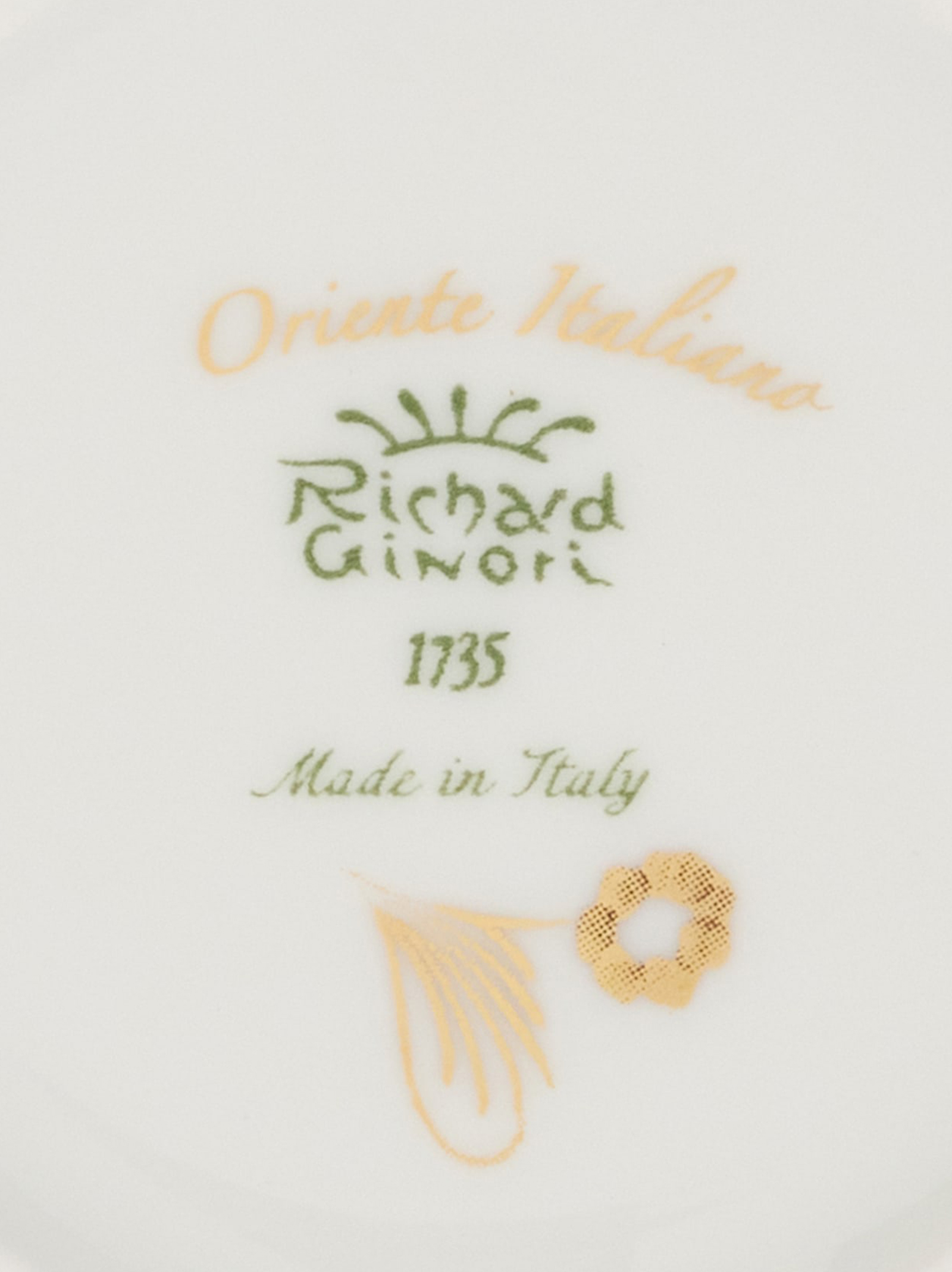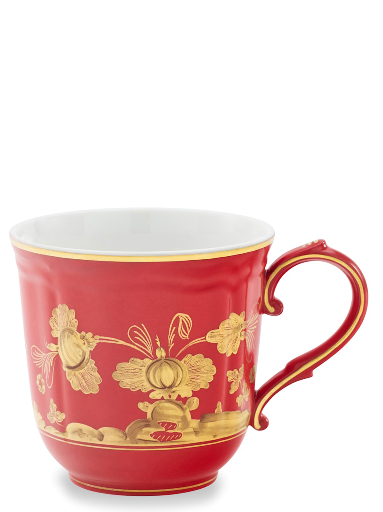 Porcelain mug mug with pure red and gold Rubrum decoration. 'Oriente Italiano - Gold Collection' collection. Not suitable for microwave. Dishwasher safe with gentle cycle.