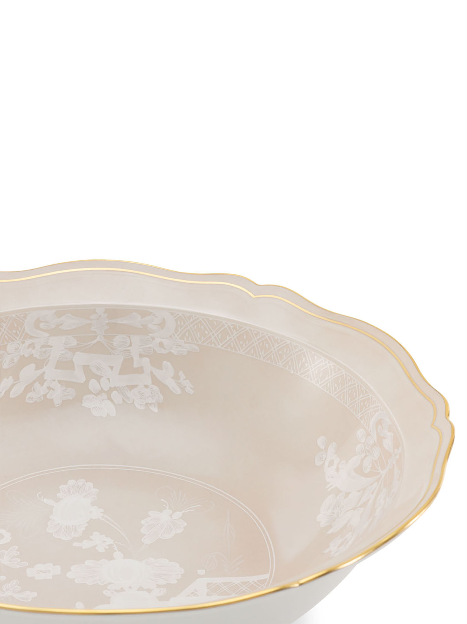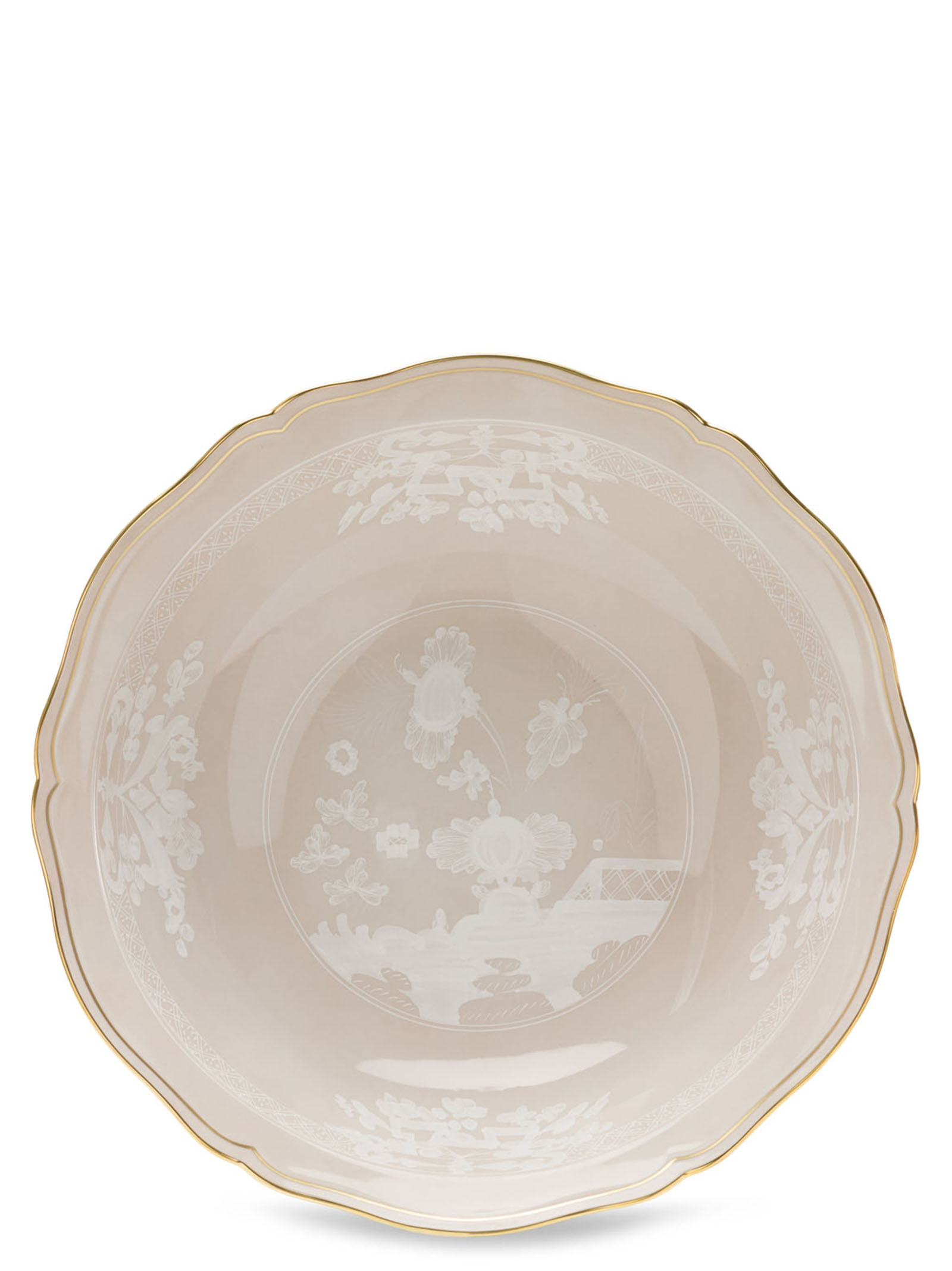 Serving plate with beige meringue decoration and gold thread. 'Oriente Italiano' collection. Not suitable for microwave. Dishwasher safe with gentle cycle.Характеристики товара