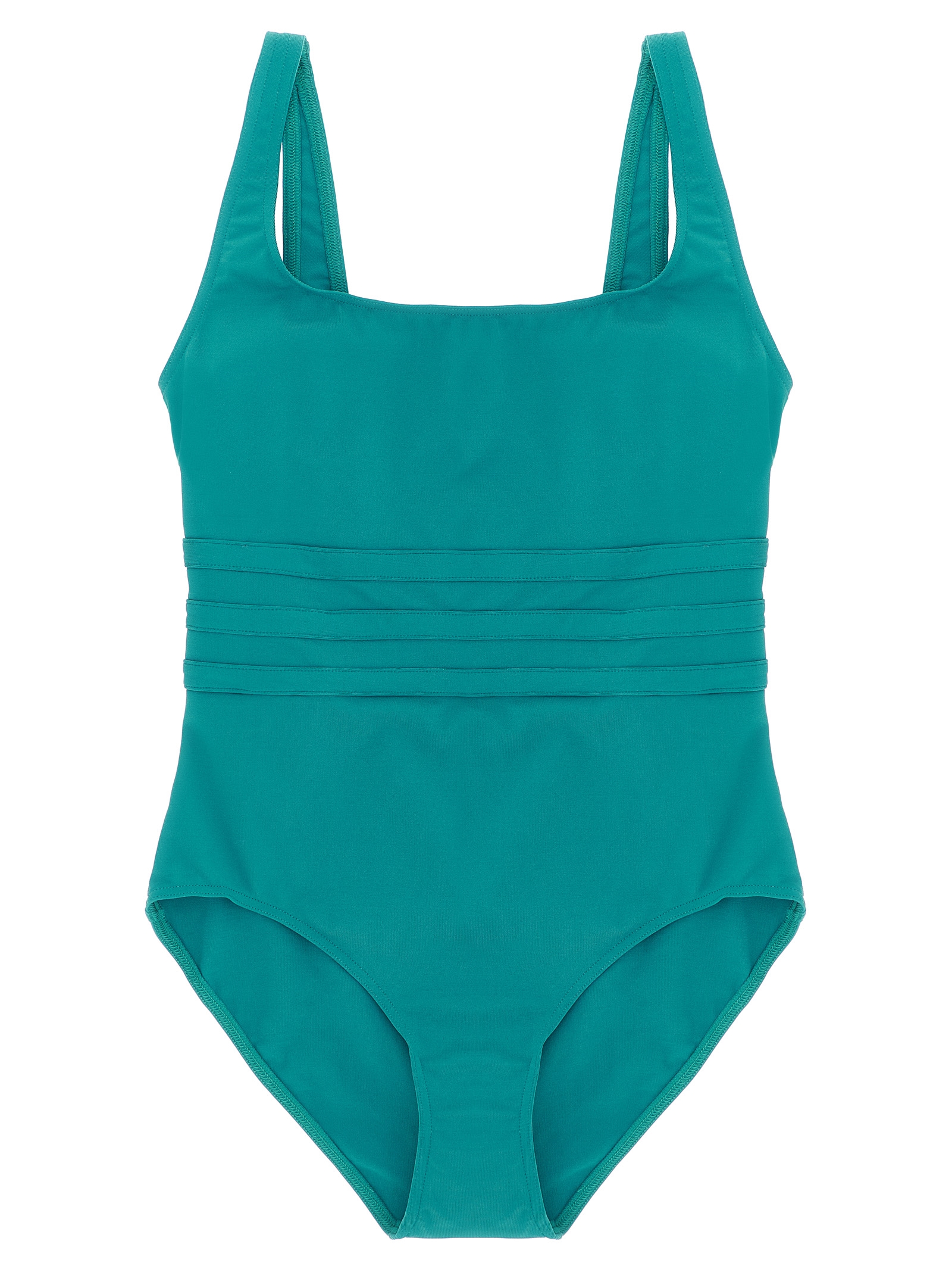 'Asia' one-piece swimsuit in Peau Douce* fabric with wide straps, square neckline at the front, round neckline at the back, and bands at the waist to define the silhouette.
