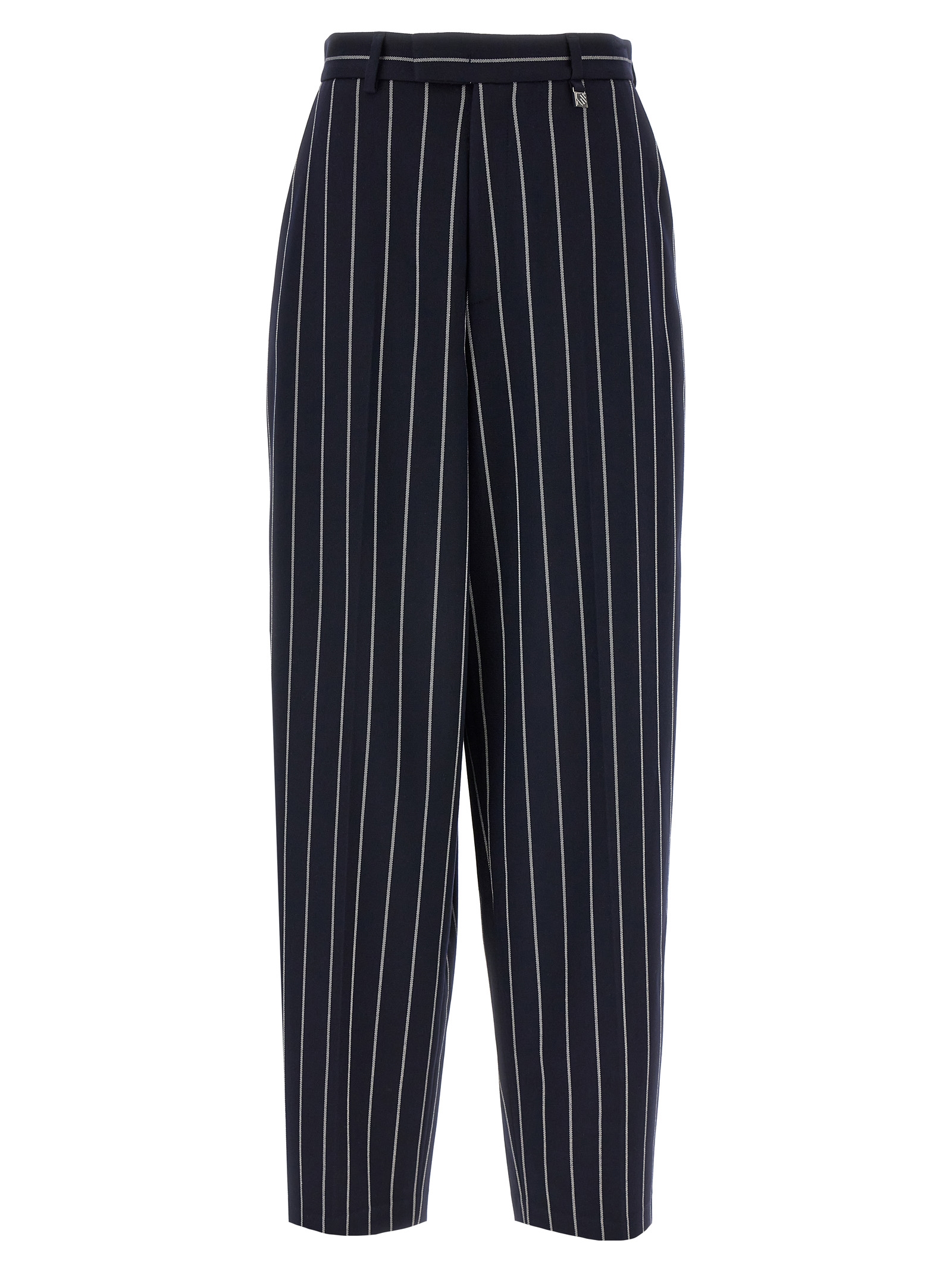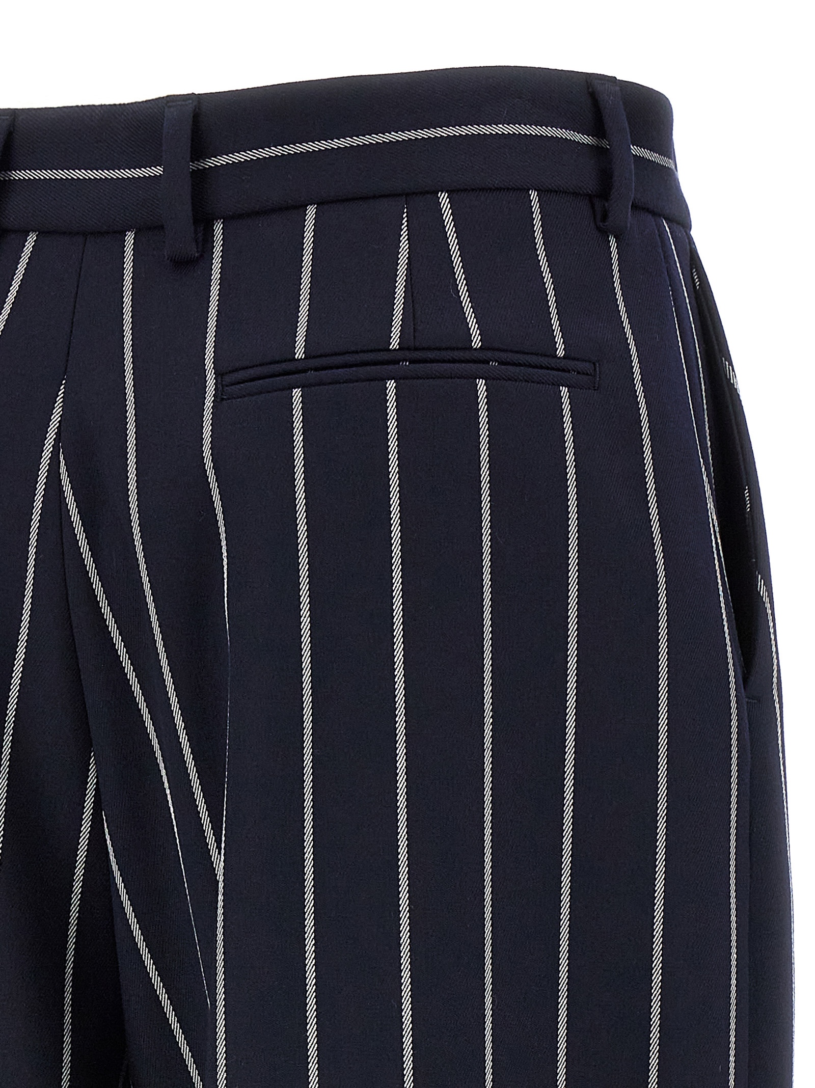 Striped viscose blend trousers, hook and button zip closure, pockets, straight leg with stretched crease.Характеристики товара