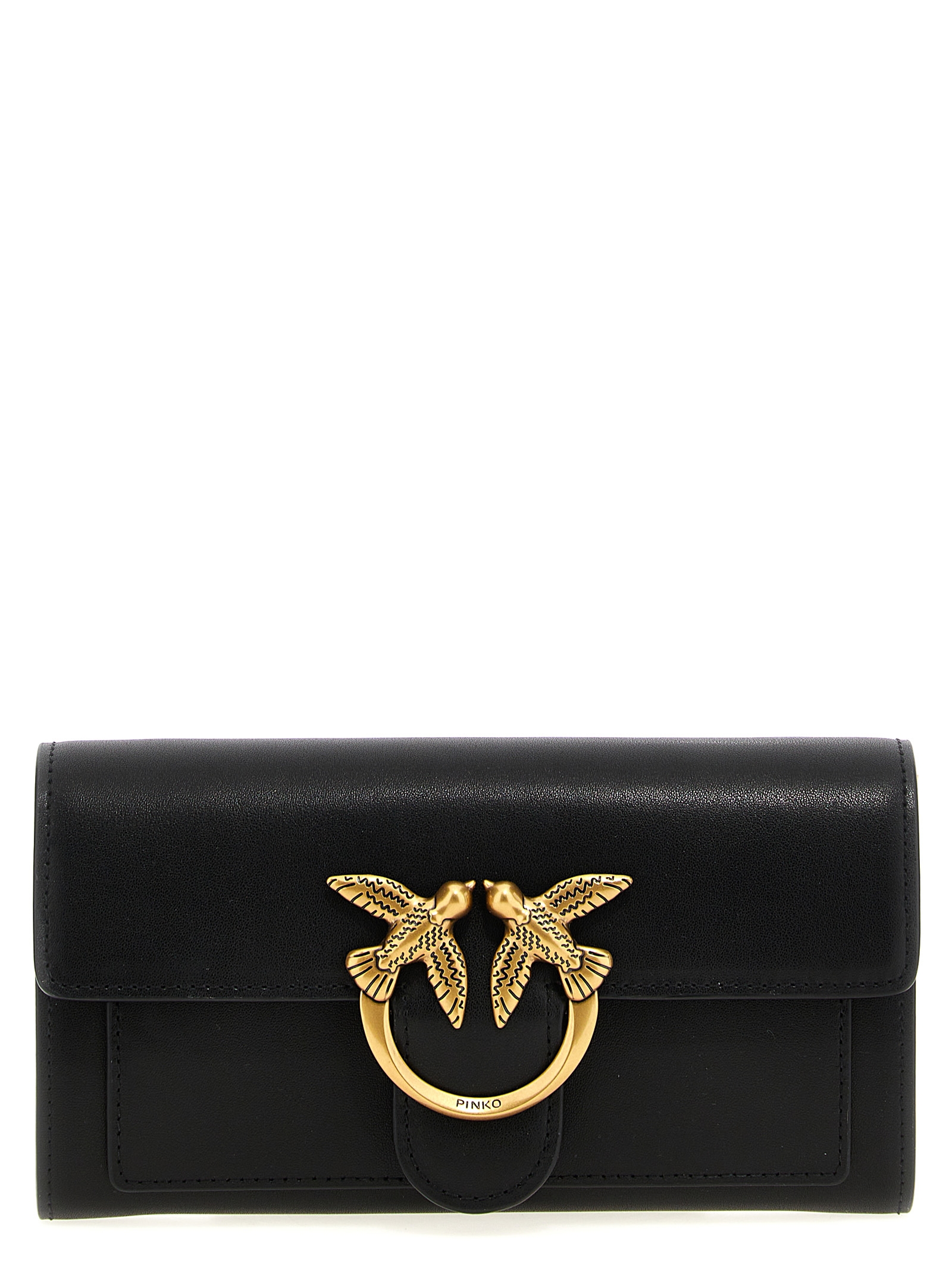 ‘Love Simply’ wallet on chain in silk-touch leather, magnetic flap closure with iconic metallic ‘Love Birds Diamond Cut’ buckle on the front, microfiber lining, removable chain shoulder strap.