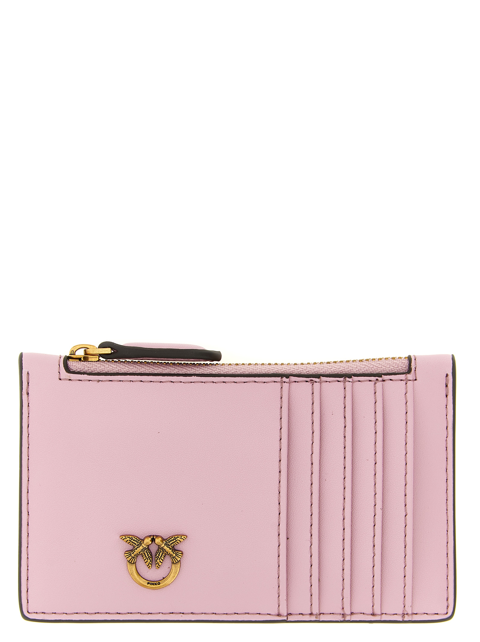 'Airone' silk leather card holder, metal 'Love Birds Diamond Cut' logo plaque on the front, top zip closure, polycotton lining.
