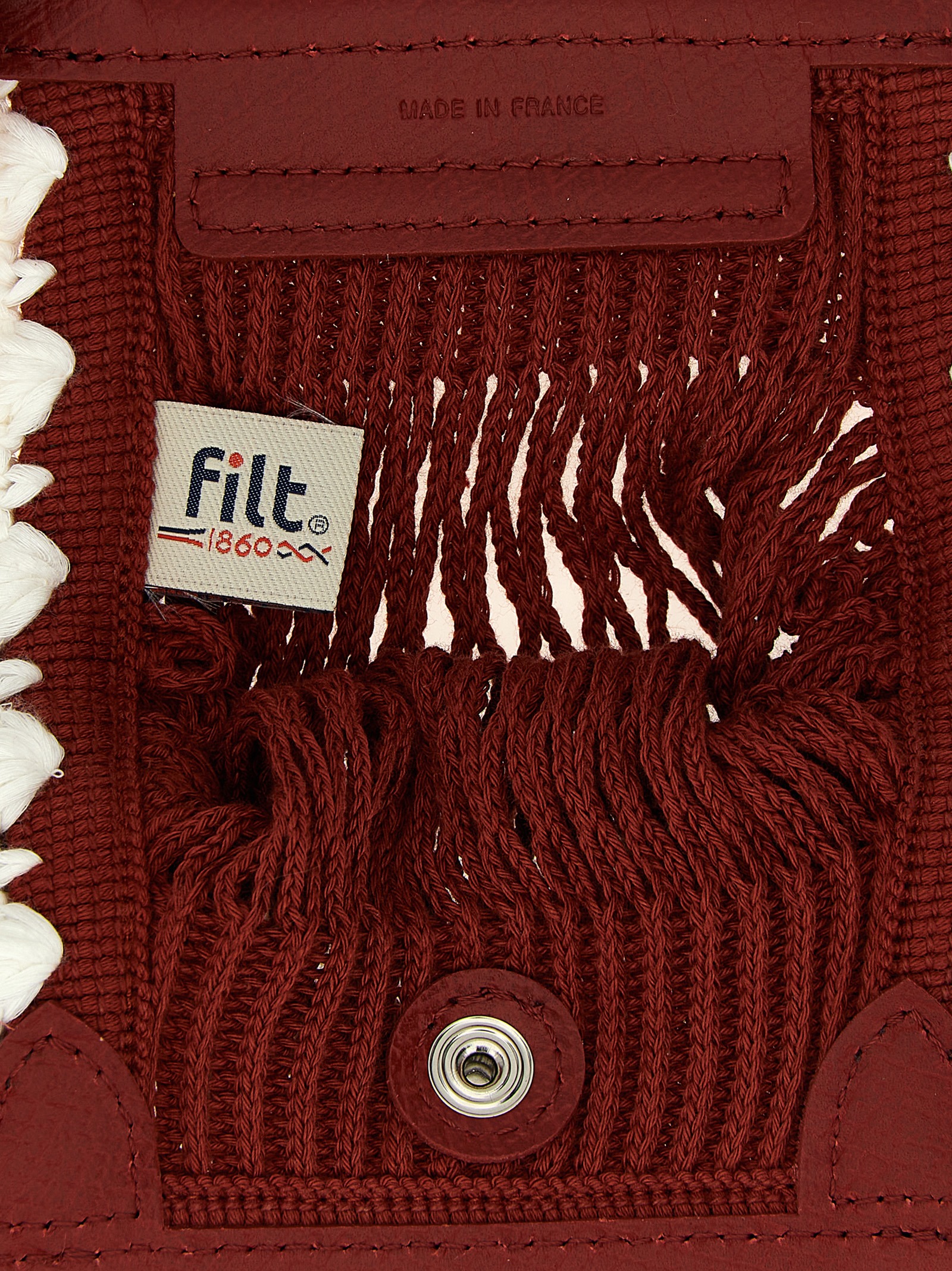 'XS Le Pliage Filet' cotton mesh crossbody bag, leather handle, leather flap with snap button closure and embossed logo, shoulder strap with crochet finishing handmade by the NGO ANAKA in Madagascar. In collaboration with FILT, the French brand that produces mesh shopping bags.