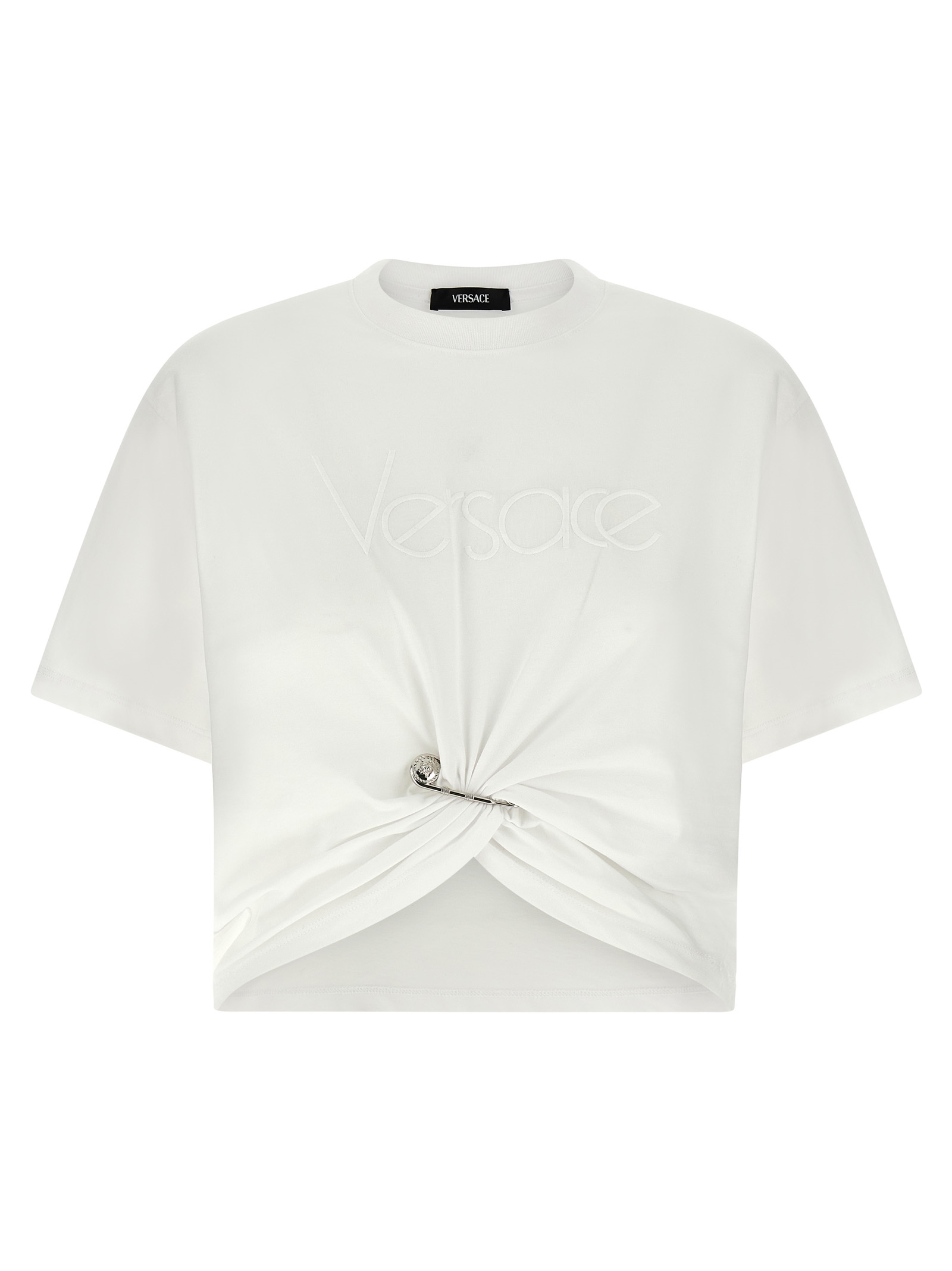 Cotton T-shirt with tone-on-tone embroidered logo on the front, crew neck, 'Safety pin' curling and short sleeves.