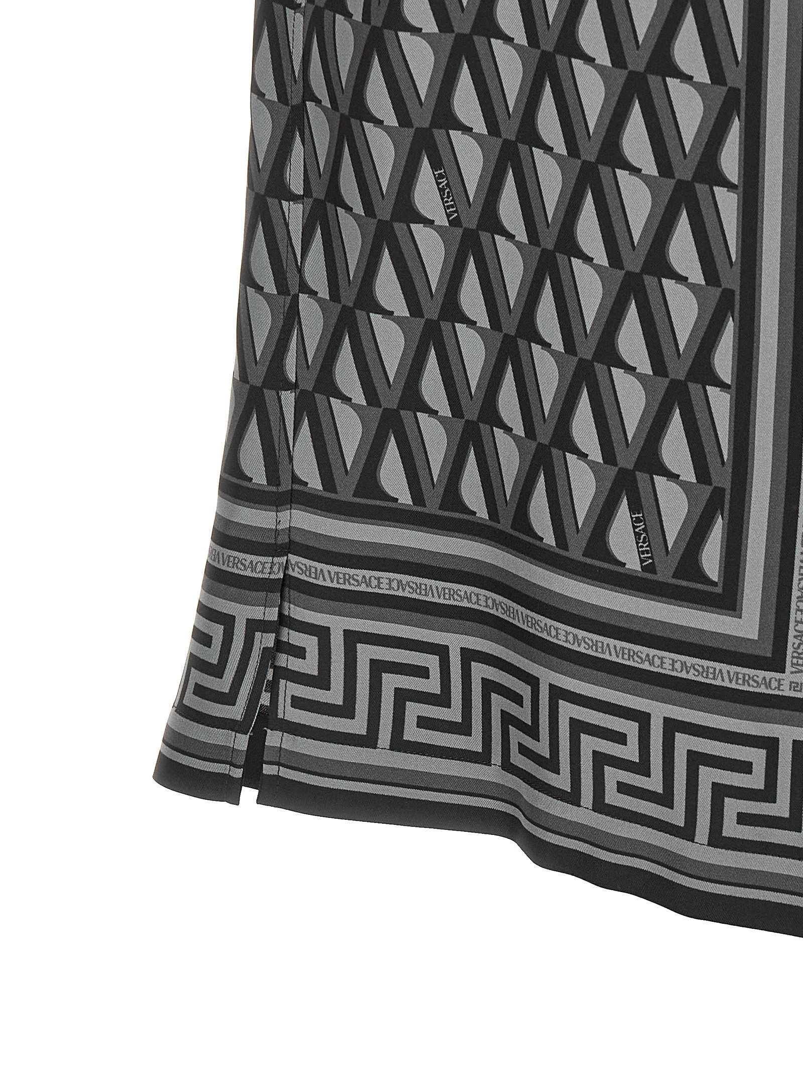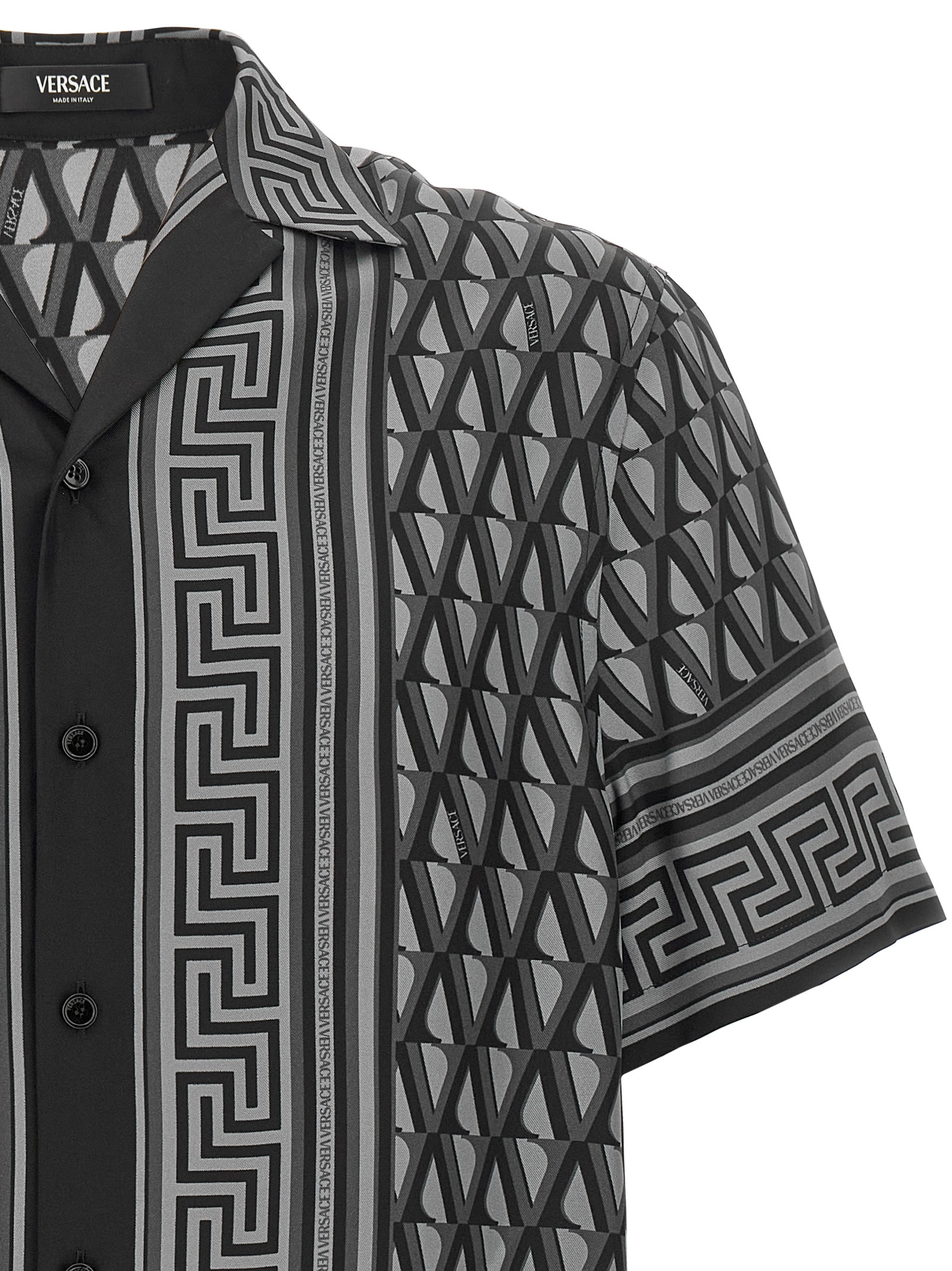 All-over 'V Greca' print silk twill shirt with bowling style, front button closure, short sleeves, side slits.Характеристики товара