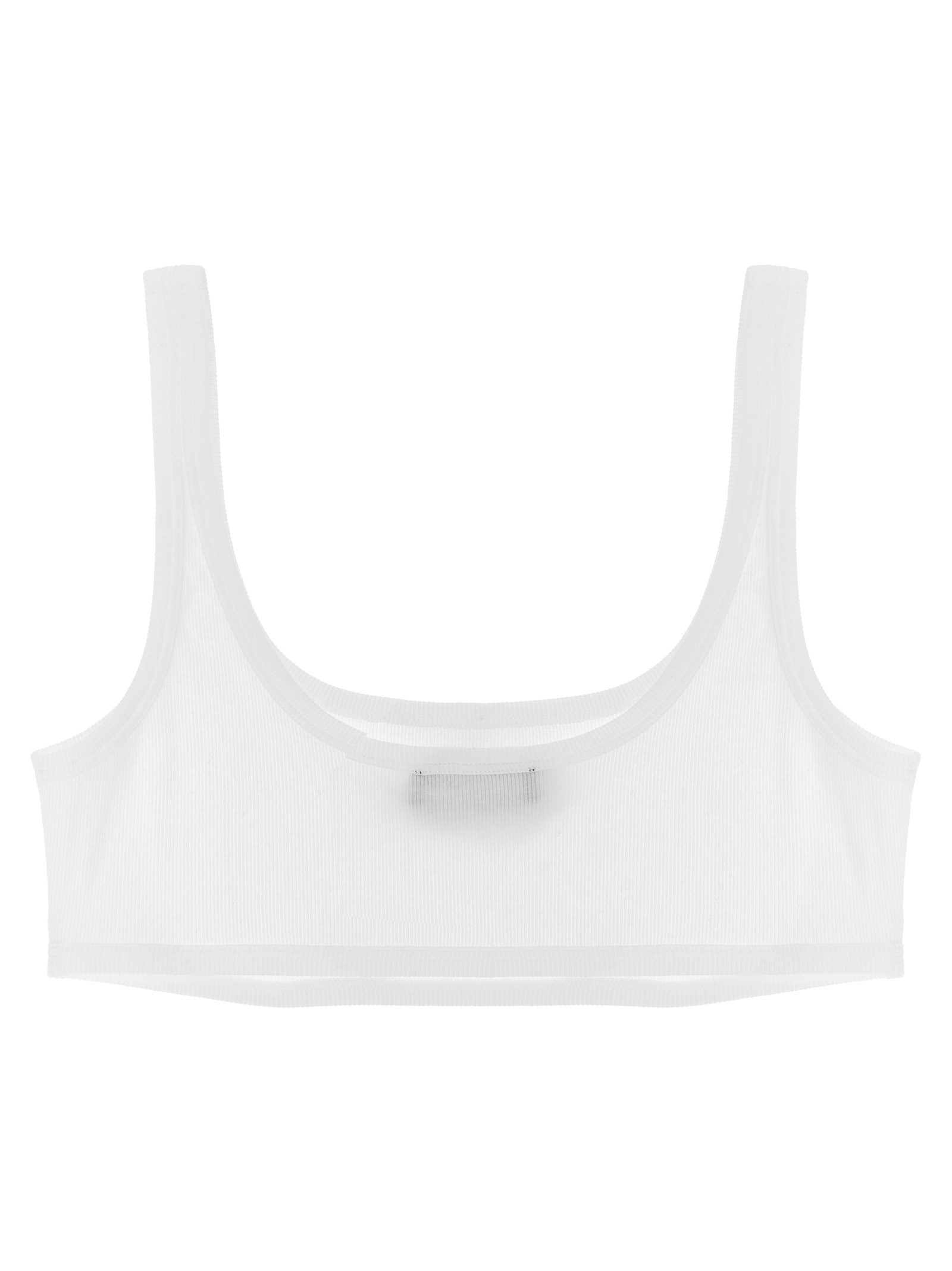 Ribbed cotton bra with front 'Versace Logo' embroidery, round neckline, thin straps.