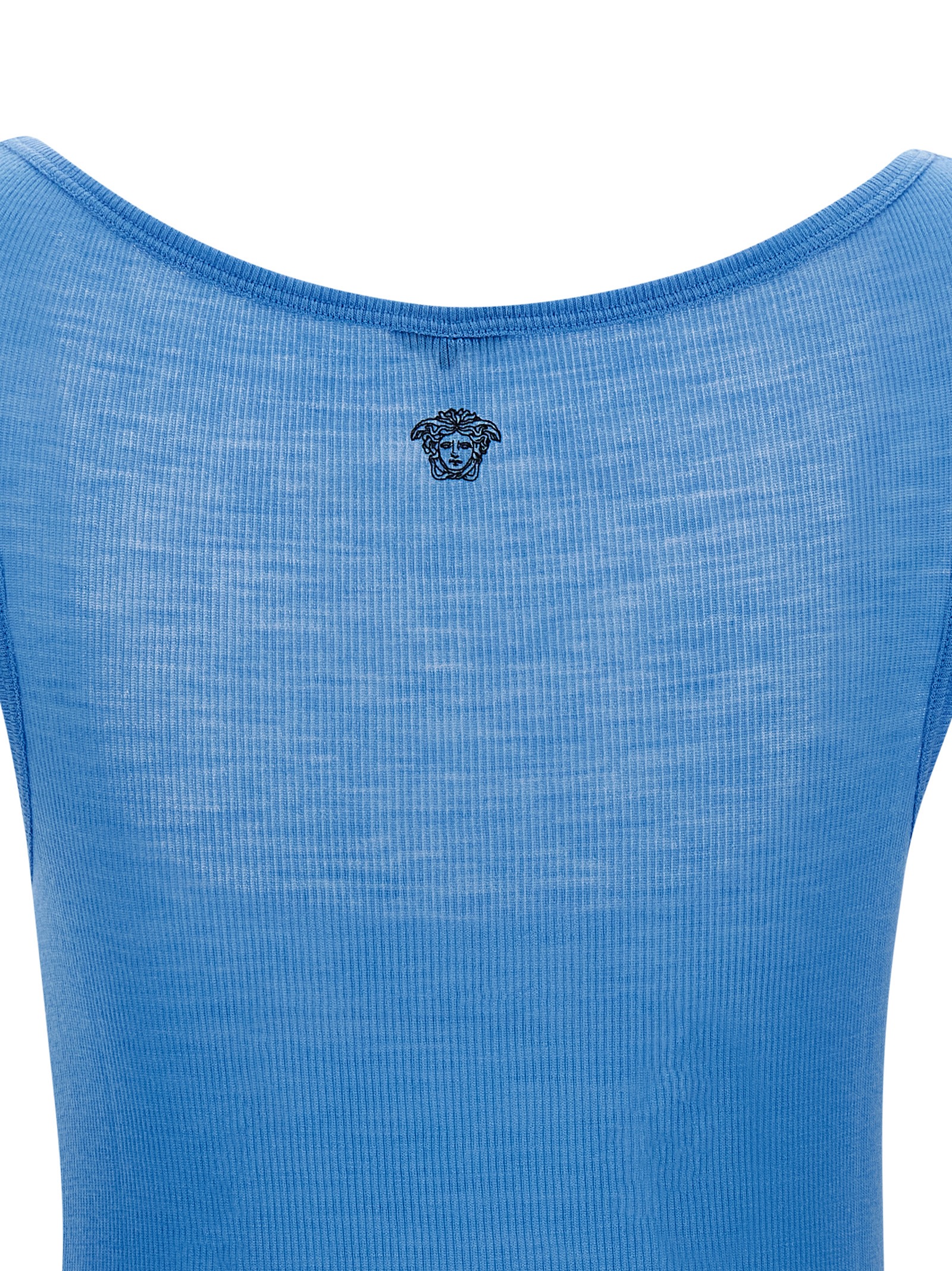 Ribbed virgin wool tank top, wide round neckline at the front, Medusa embroidery at the back.