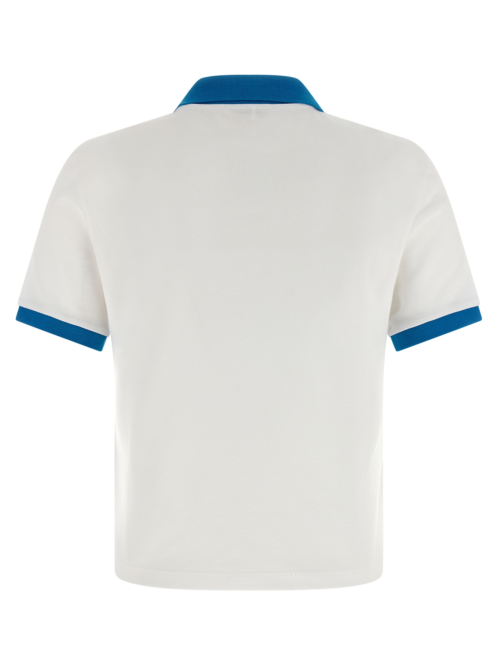 Поло из хлопка пике с контрастными деталями, вышивка нитками «Медуза» и логотип «Versace» спереди, слегка укороченный фасон, воротник и пуговицы, короткие манжеты на рукавах, боковые разрезы по низу.