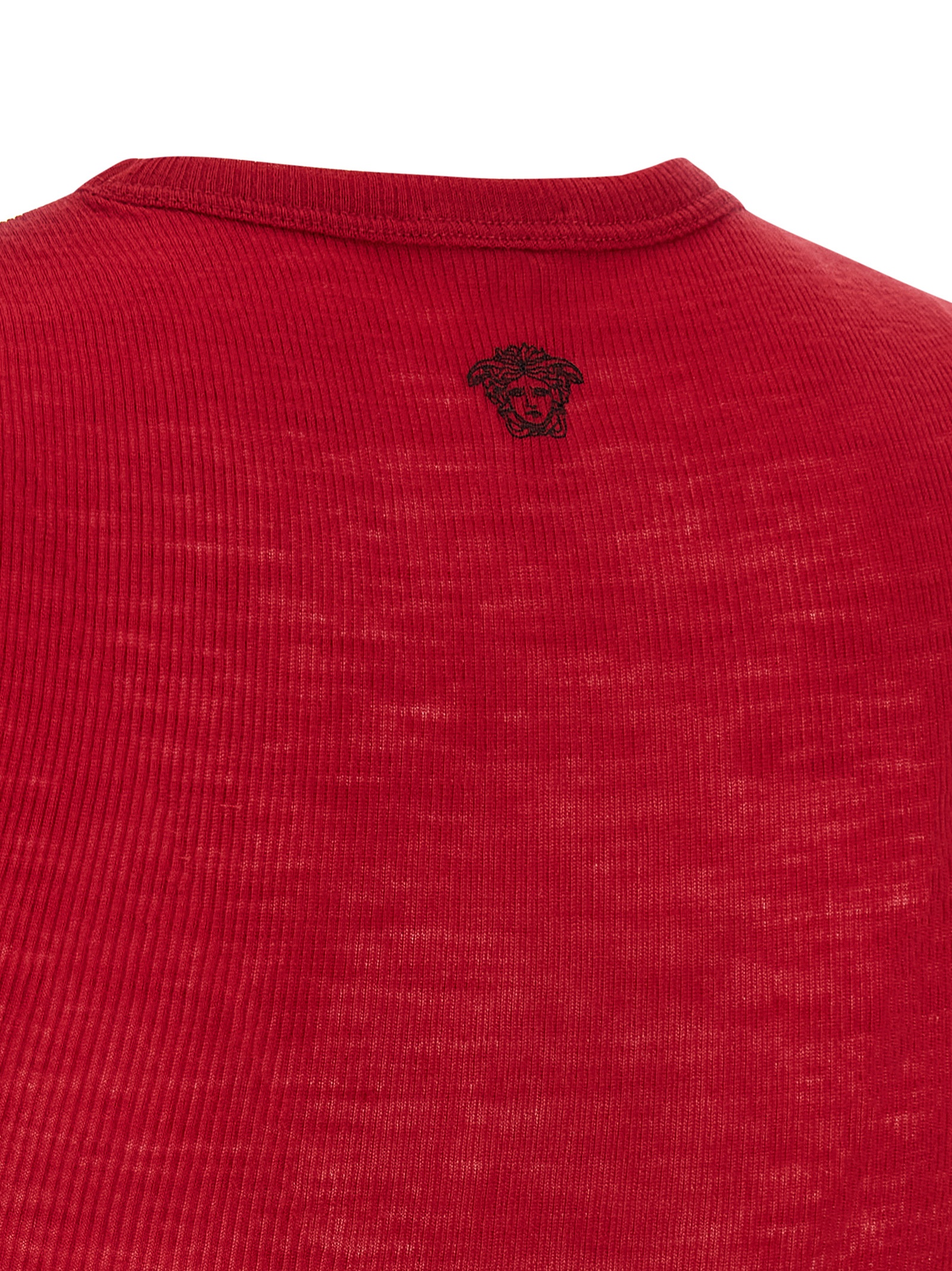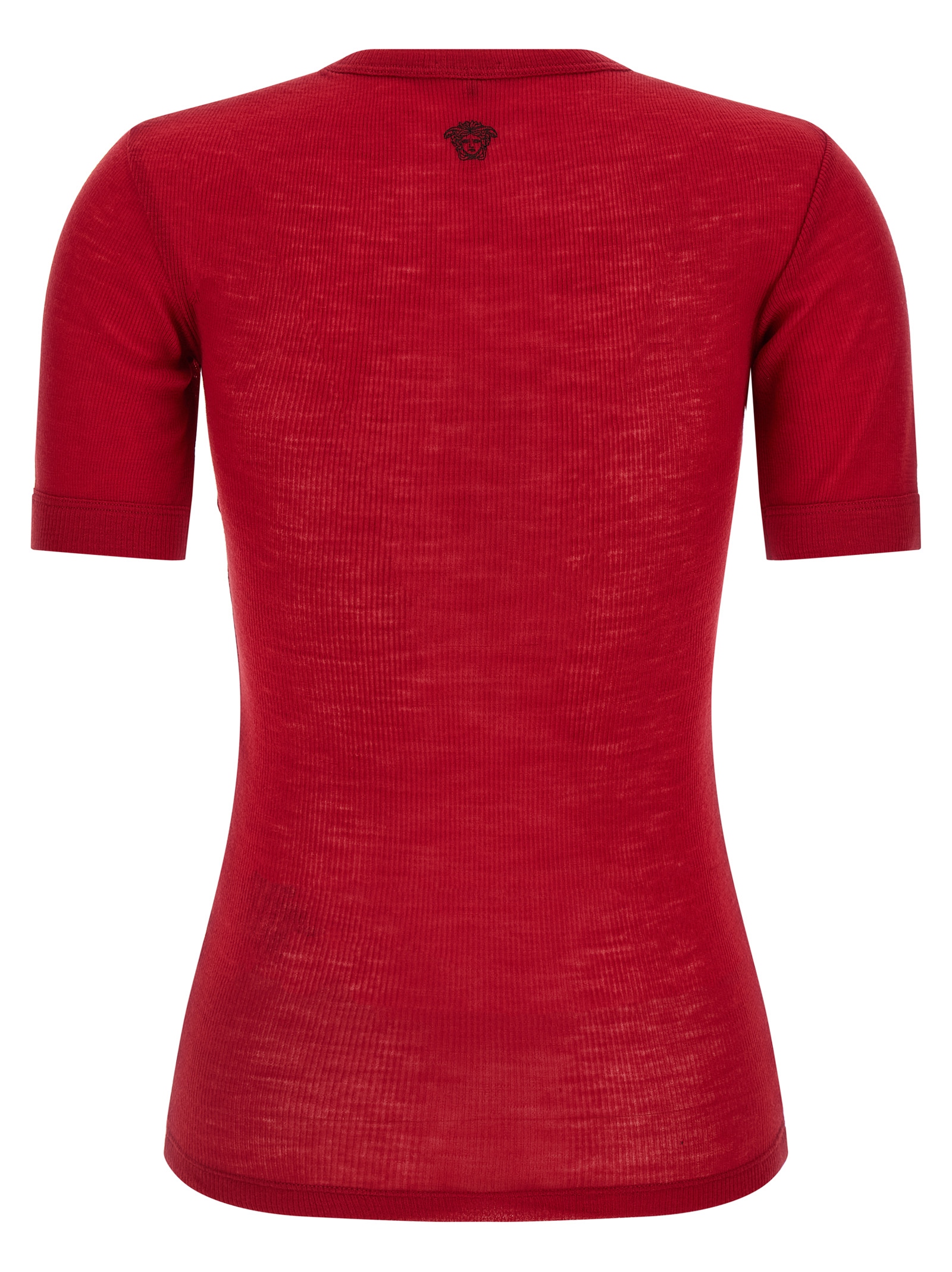 Ribbed stretch virgin wool T-shirt, logo embroidery and contrast 'Medusa' on the front, crew neck, short cuffed sleeves.