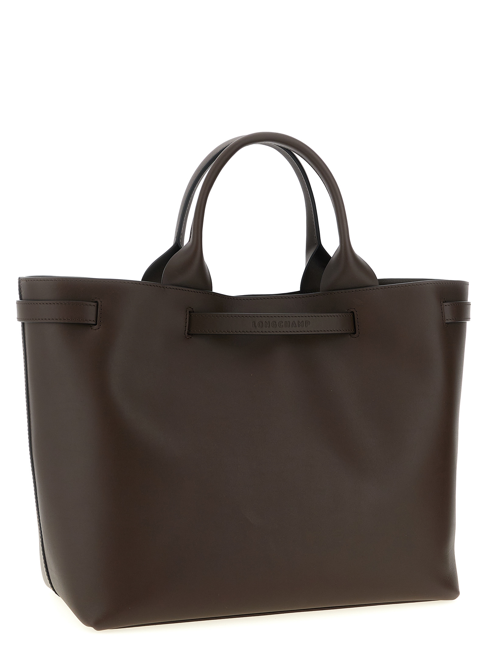Le Roseau Smart' leather shopping bag with double fixed handle, magnet closure, strap and metal buckle at the front.