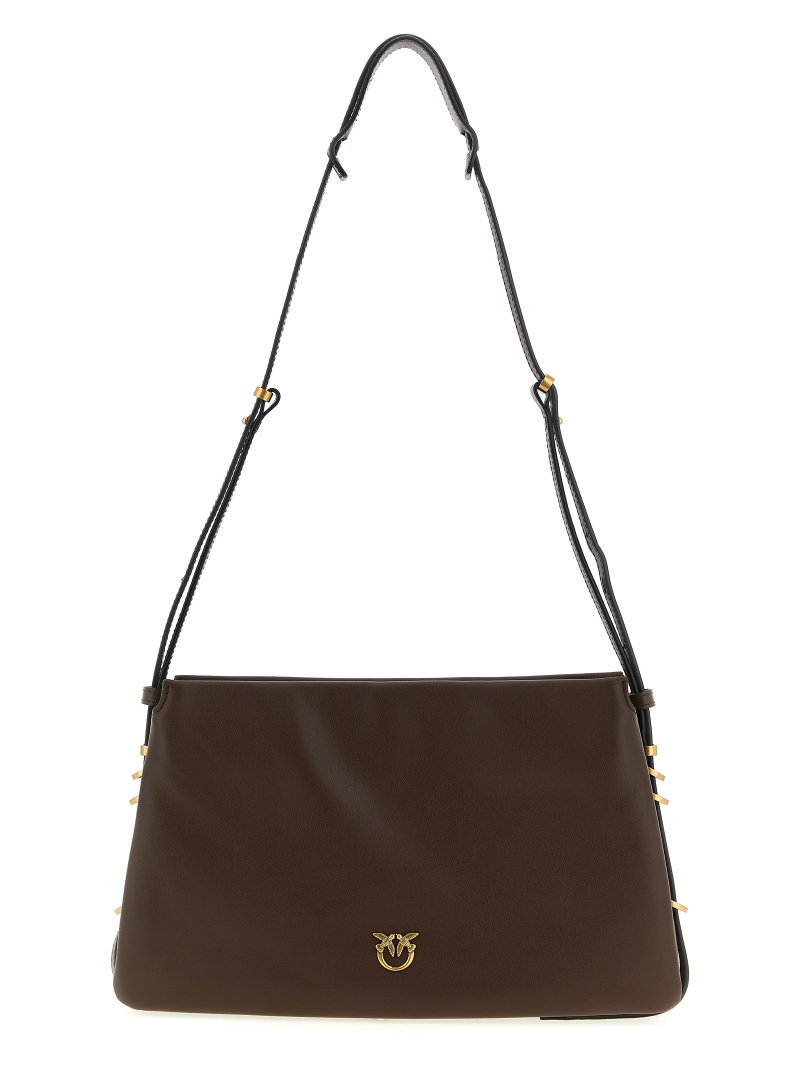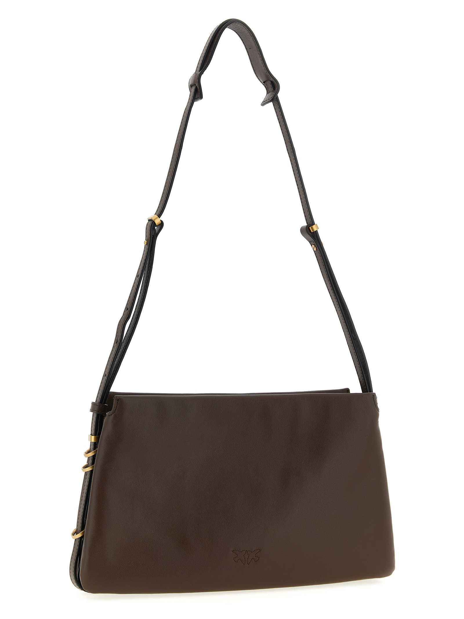 'Triplet' crossbody bag in calf leather with three bellows, front metal logo, top zip closure, adjustable shoulder strap.
