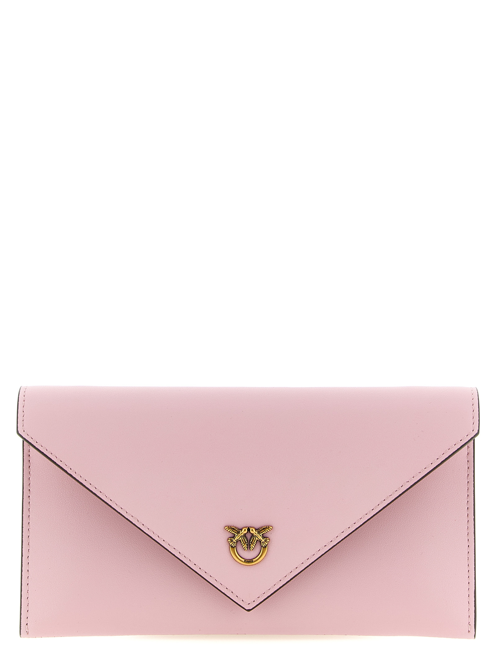 'Flat Mini' wallet on chain in silky hand-leather with magnetic flap closure with metal 'Love Birds Diamond Cut' logo on the front, polycotton lining, removable chain shoulder strap.