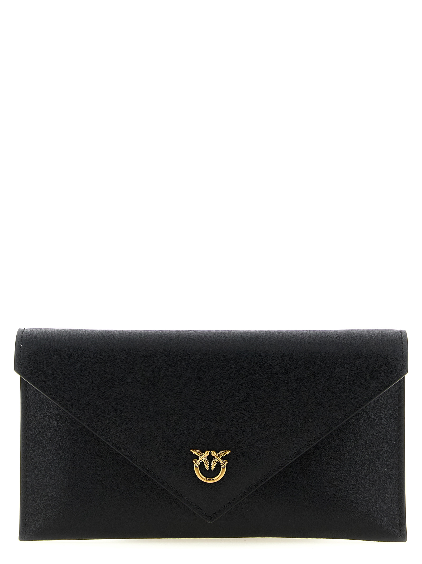 'Flat Mini' wallet on chain in silky hand-leather with magnetic flap closure with metal 'Love Birds Diamond Cut' logo on the front, polycotton lining, removable chain shoulder strap.