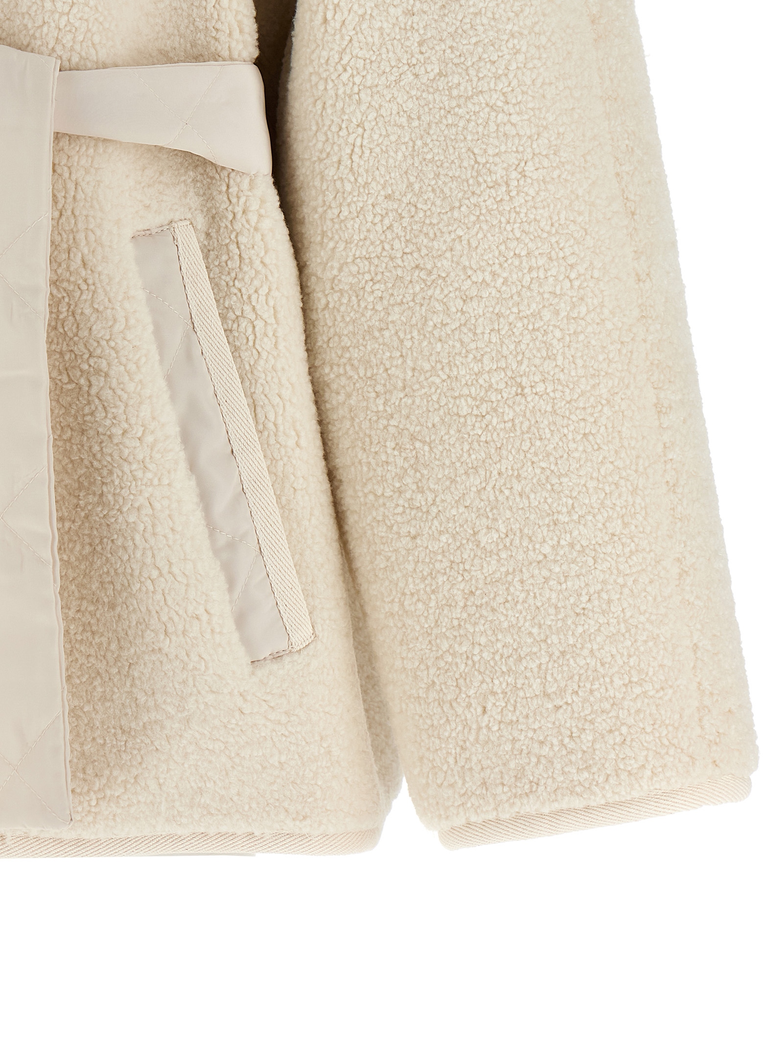 Куртка Capperi из овчины с стеганой нейлоновой вставкой спереди, подкладкой из ткани с эффектом замши, капюшоном, высоким воротником, застежкой на кнопки спереди, карманами, длинными рукавами, съемным поясом.Характеристики товара