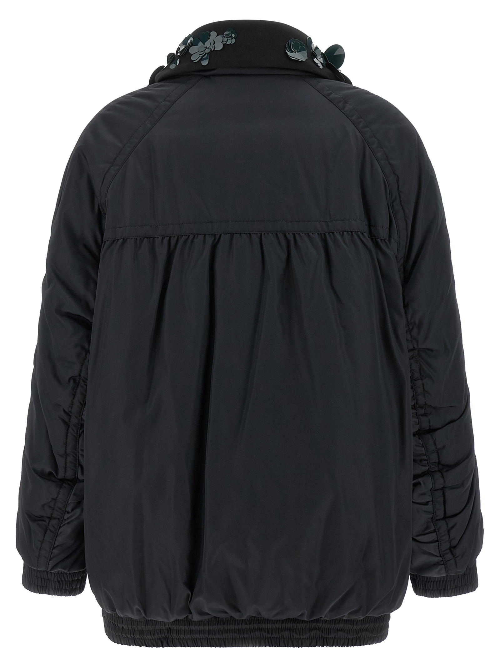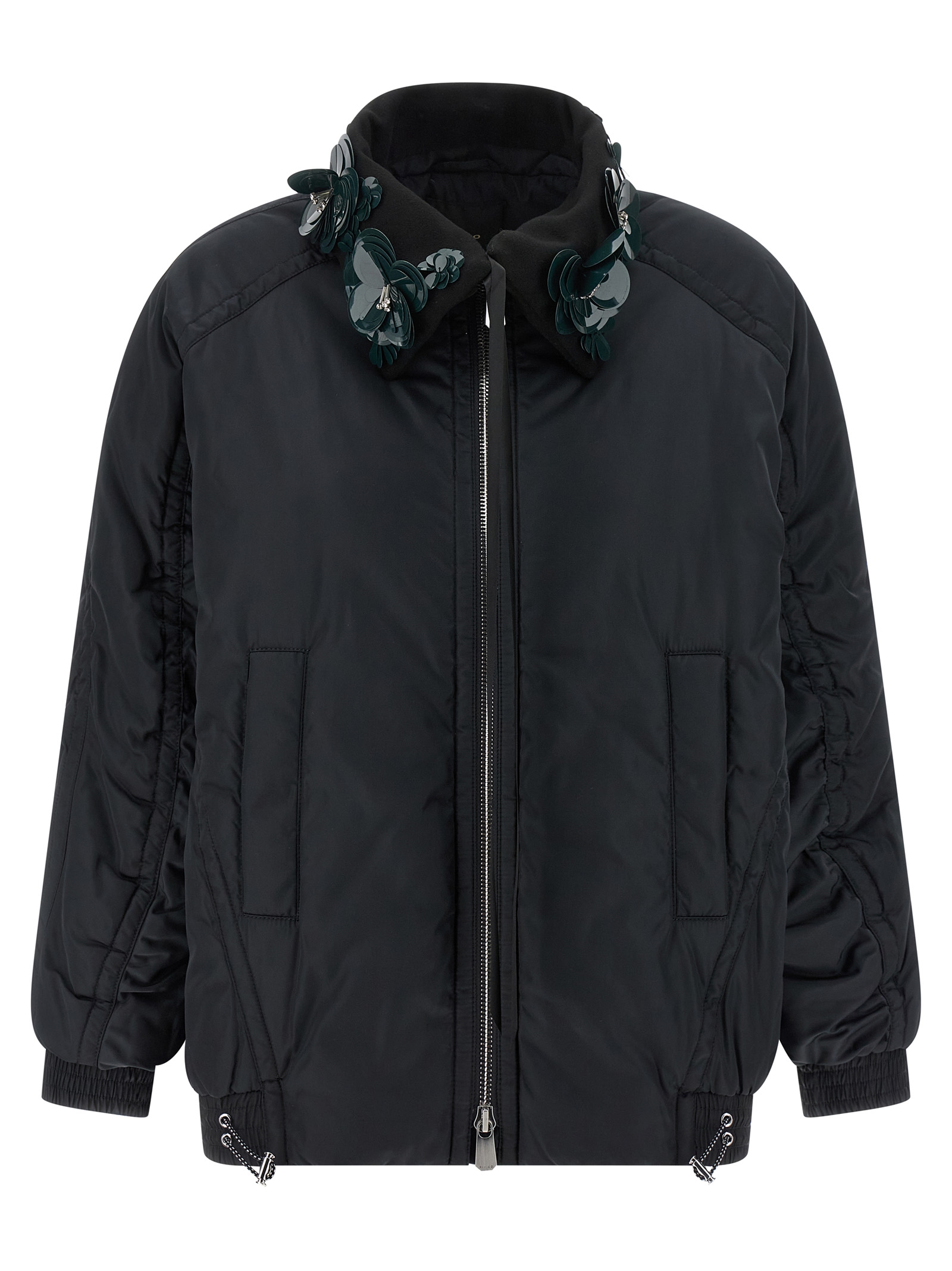 'Clarinda' jacket in matt-effect technical fabric with a soft, slightly padded hand, shirt collar with removable cloth insert with floral decorations in patent leather and crystals, front zip closure, pockets, long sleeves with elastic cuffs, elastic with adjustable drawstring at the hem.Характеристики товара