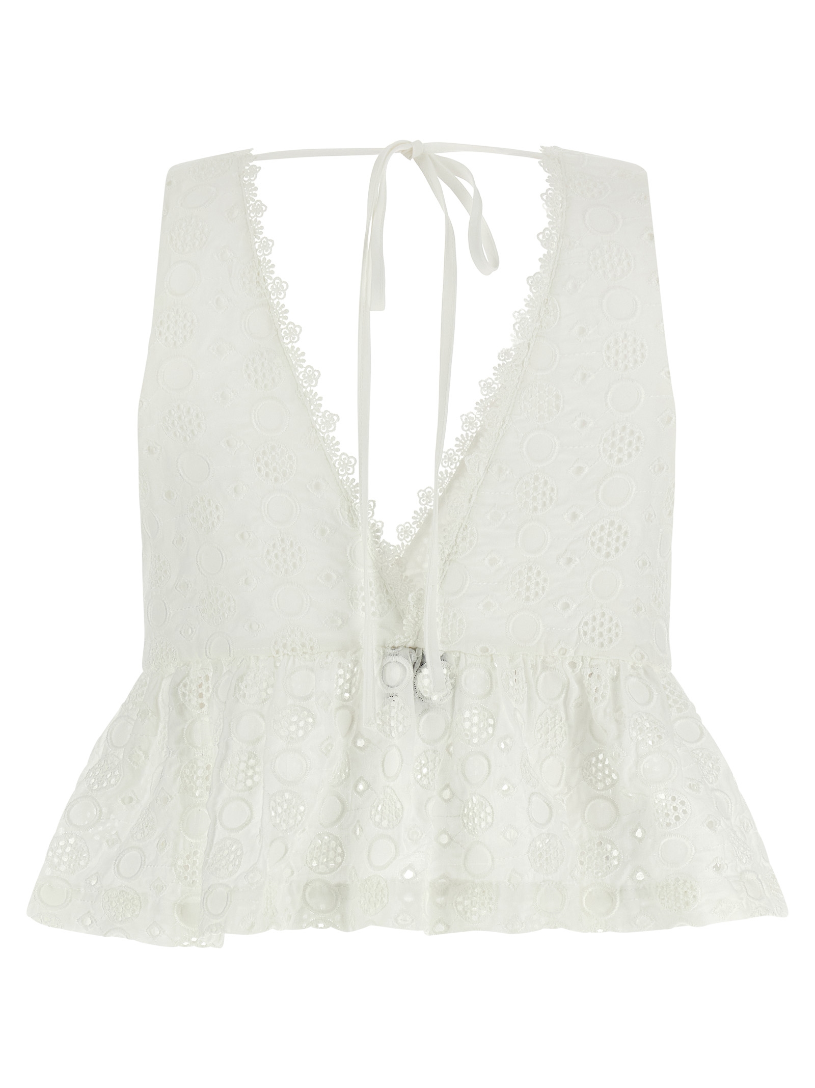 Укороченный топ Kiersten из ткани сангалло с V-образным вырезом спереди и сзади, шнуровкой сзади, боковой застежкой-молнией и оборкой по низу.