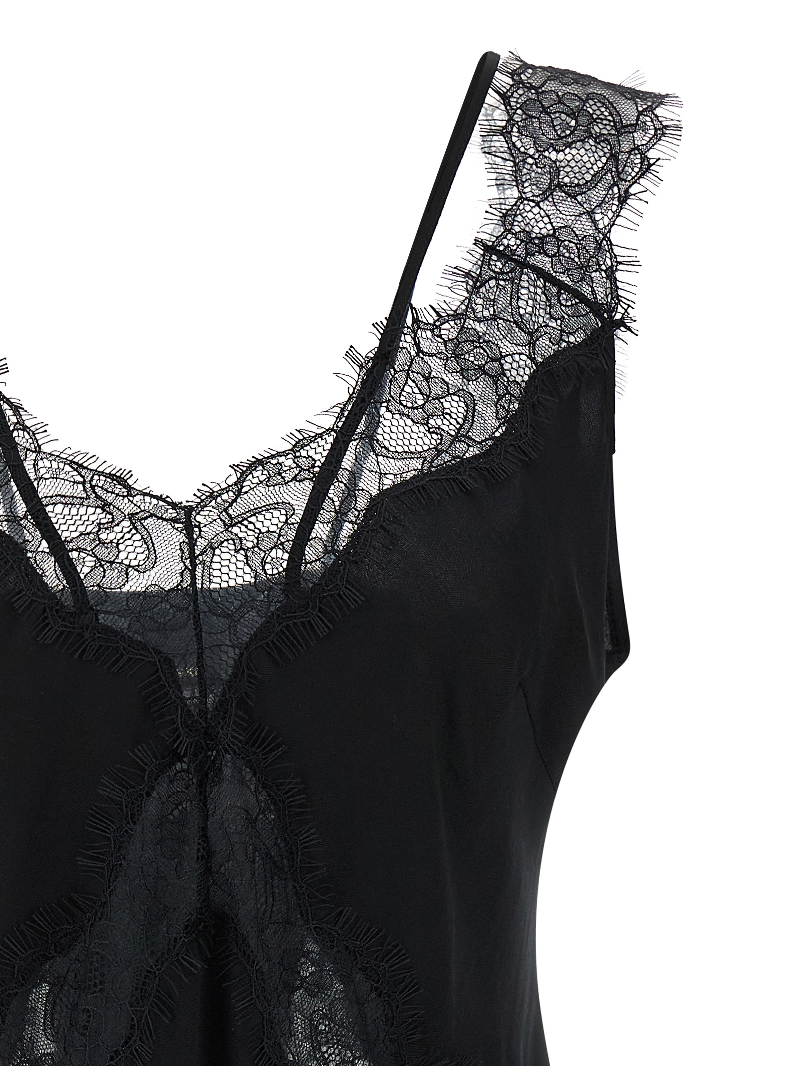 Топ Lydia из вискозной саржи с кружевными вставками в тон, V-образный вырез, двойные бретели.