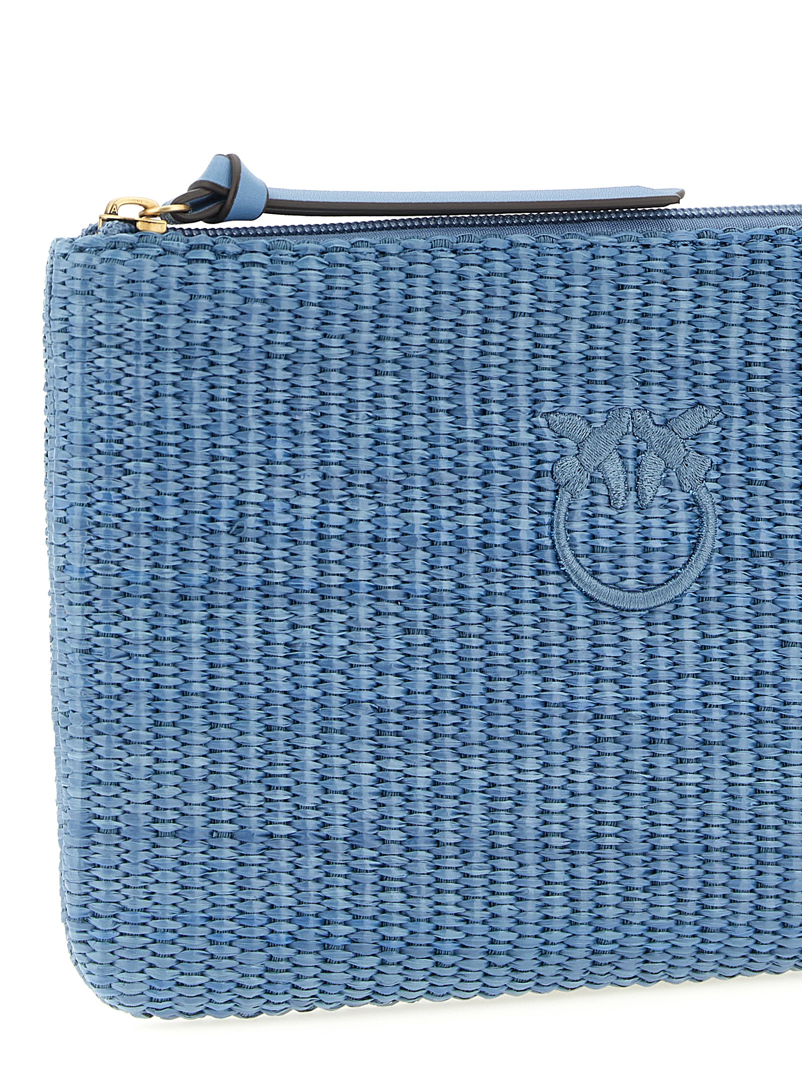 Сумочка-клатч из плетеной ткани с эффектом рафии, вышивка «Влюбленные птички» в тон ткани спереди, застежка-молния сверху, подкладка из хлопчатобумажной ткани и внутренний карман. Изделие ручной работы, любые незначительные дефекты следует рассматривать как отличительные признаки уникальности.Характеристики товара