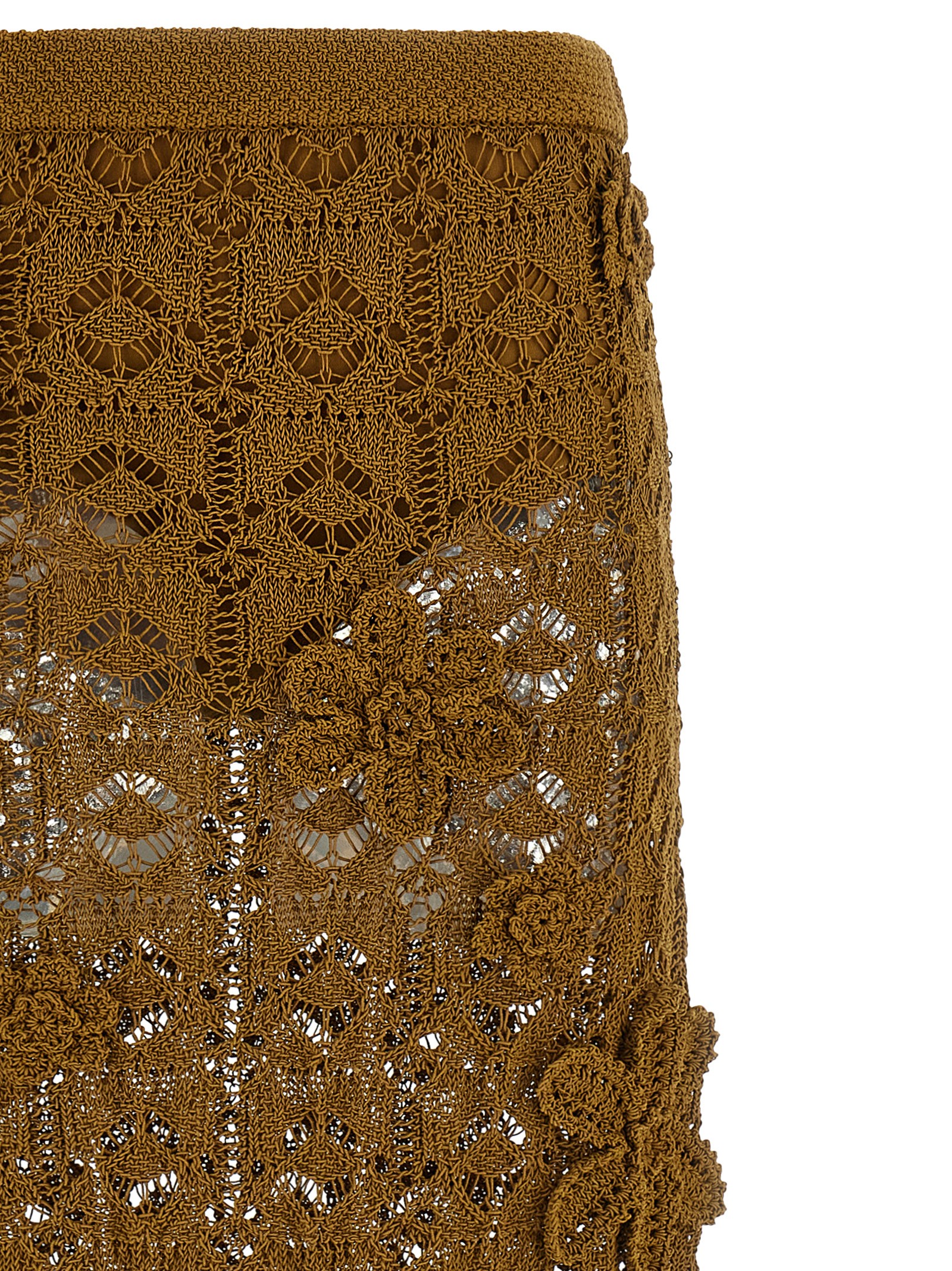 Anthemis' crochet cotton midi skirt with 3D tone-on-tone floral appliqués on the front, flared silhouette, elastic waistband, removable matching high waist briefs.