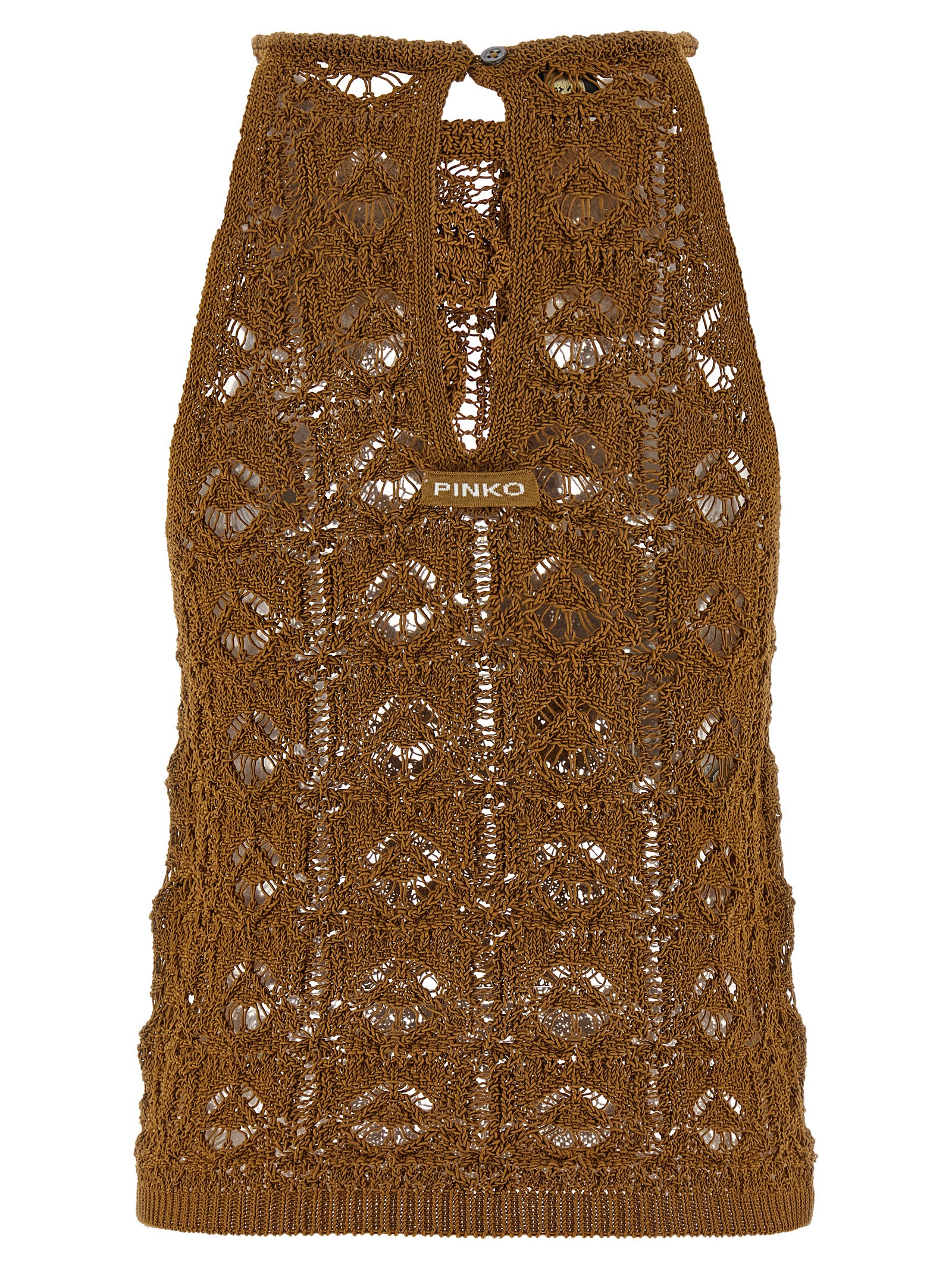 Nymphaea crochet cotton top with American-style neckline, back button closure with teardrop cut-out detail and a logo patch.