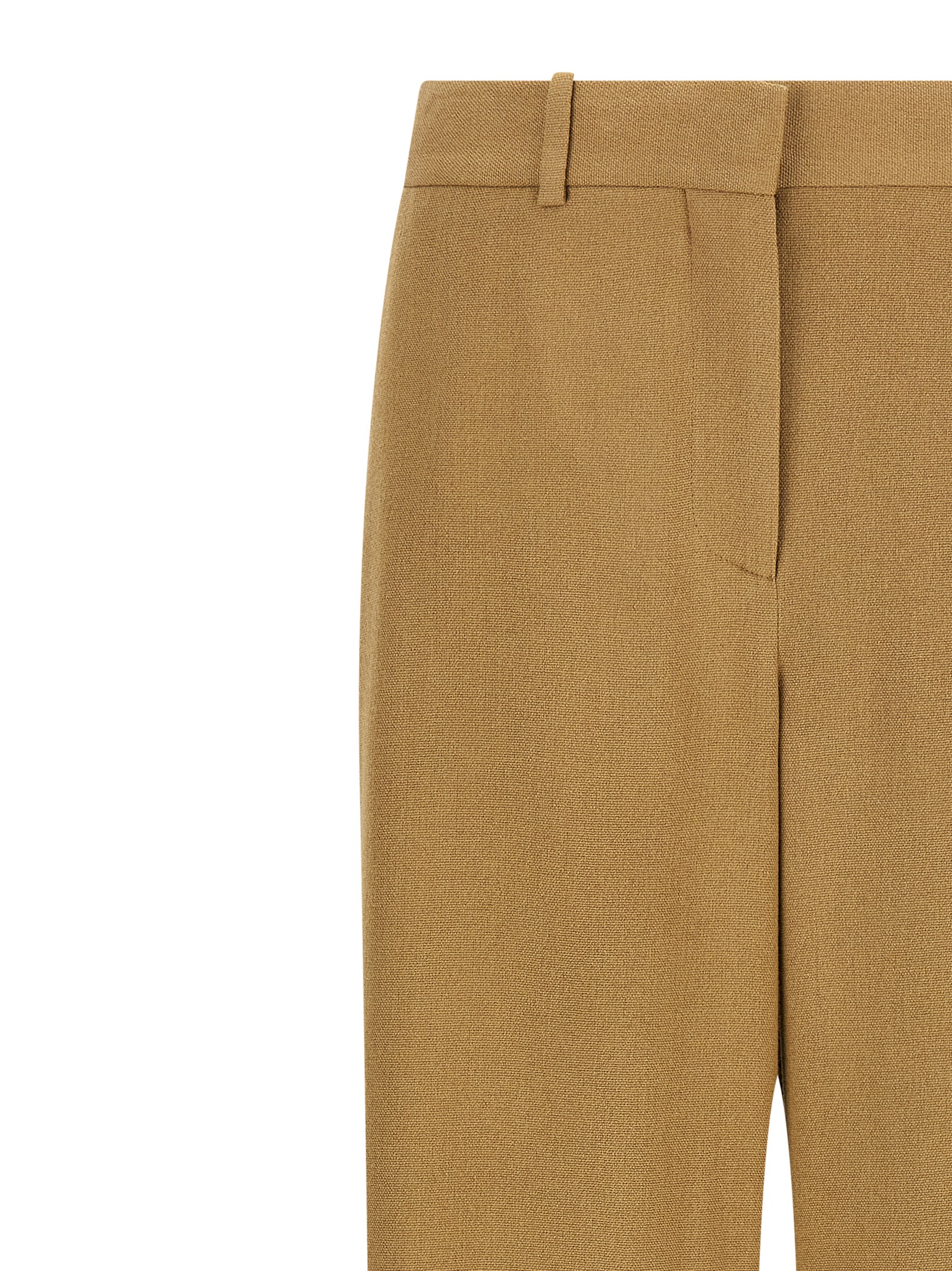 'Dender' trousers in smooth wool gabardine of medium weight, sartorial model, low waist, wide and straight leg, stretched pleat, zip hook and front button closure, pockets.