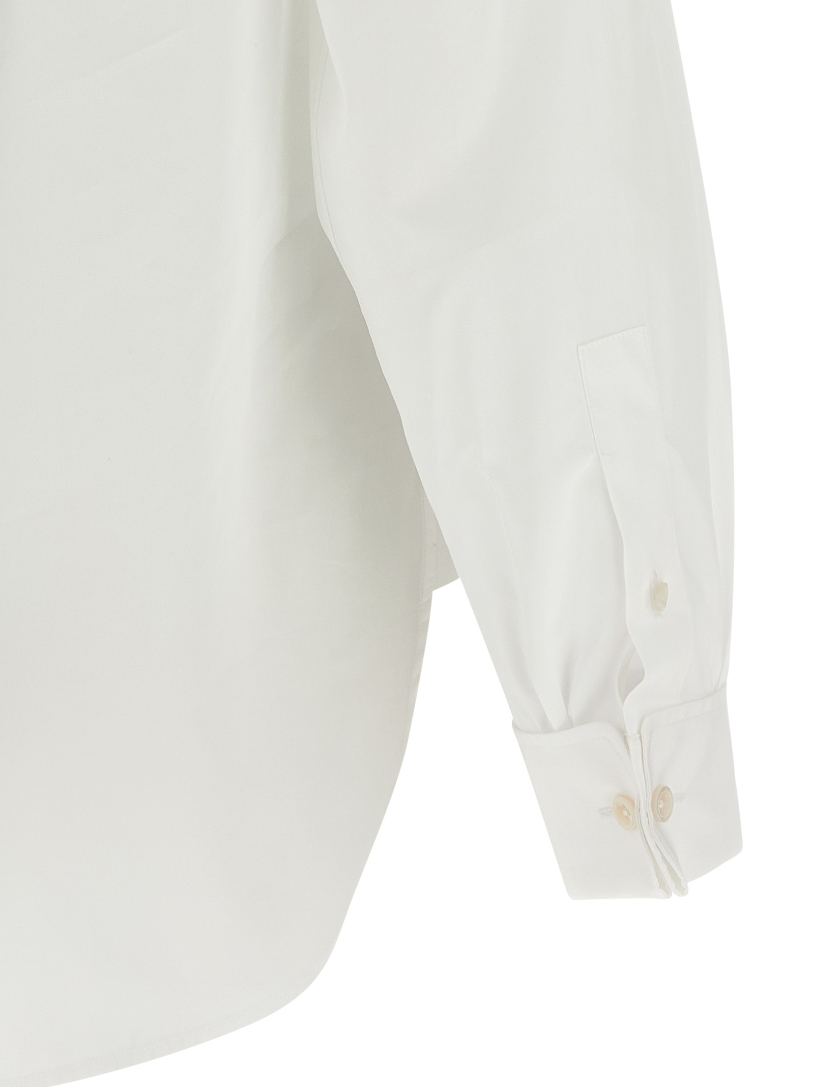 Рубашка из хлопкового поплина «Фиора» с застежкой на перламутровые пуговицы спереди, длинными рукавами с французскими манжетами, закругленным и асимметричным низом.Характеристики товара
