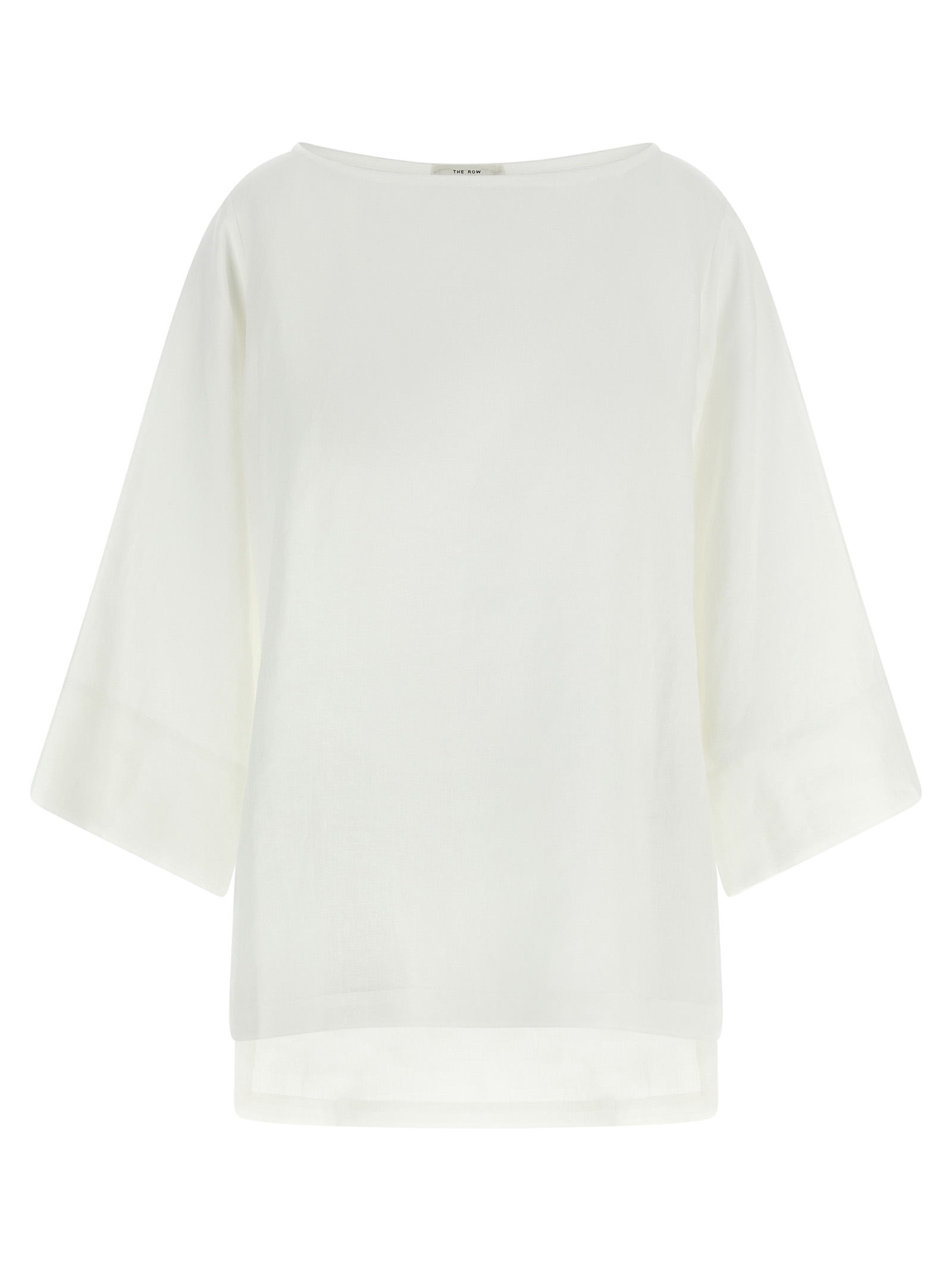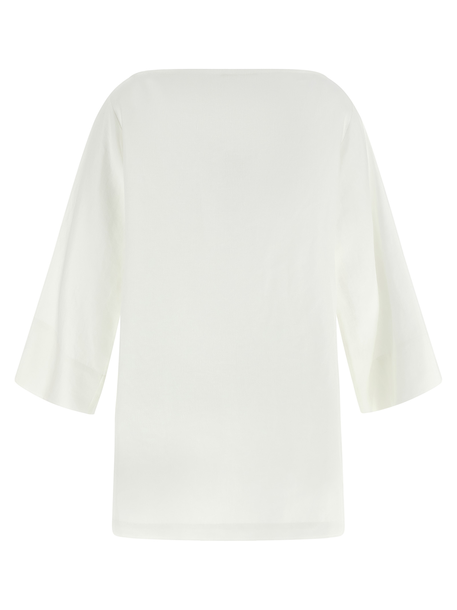 'Junia top' linen blouse, boat neck, asymmetric length with deep side slits, 3/4 wide sleeves