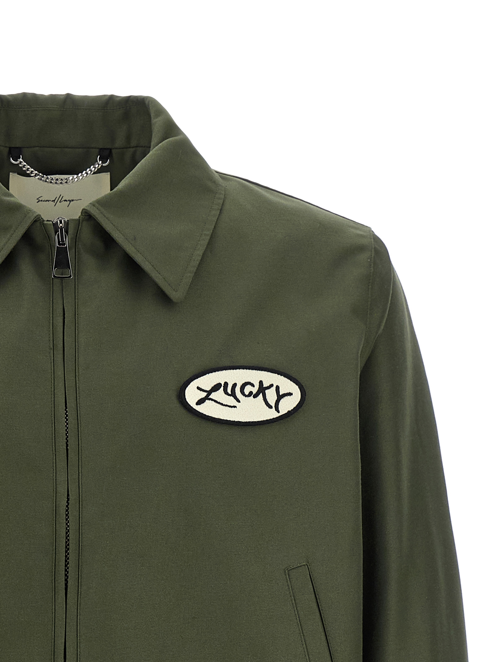 Куртка из хлопкового холста 'Lucky Station' с нашивкой спереди и застежкой-молнией, воротником рубашечного типа, расклешенным силуэтом, карманами, длинными рукавами, подкладкой с монограммой и тремя внутренними карманами.Характеристики товара