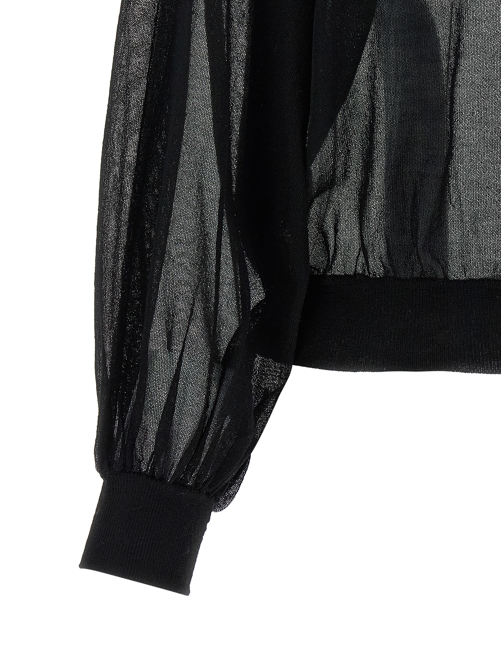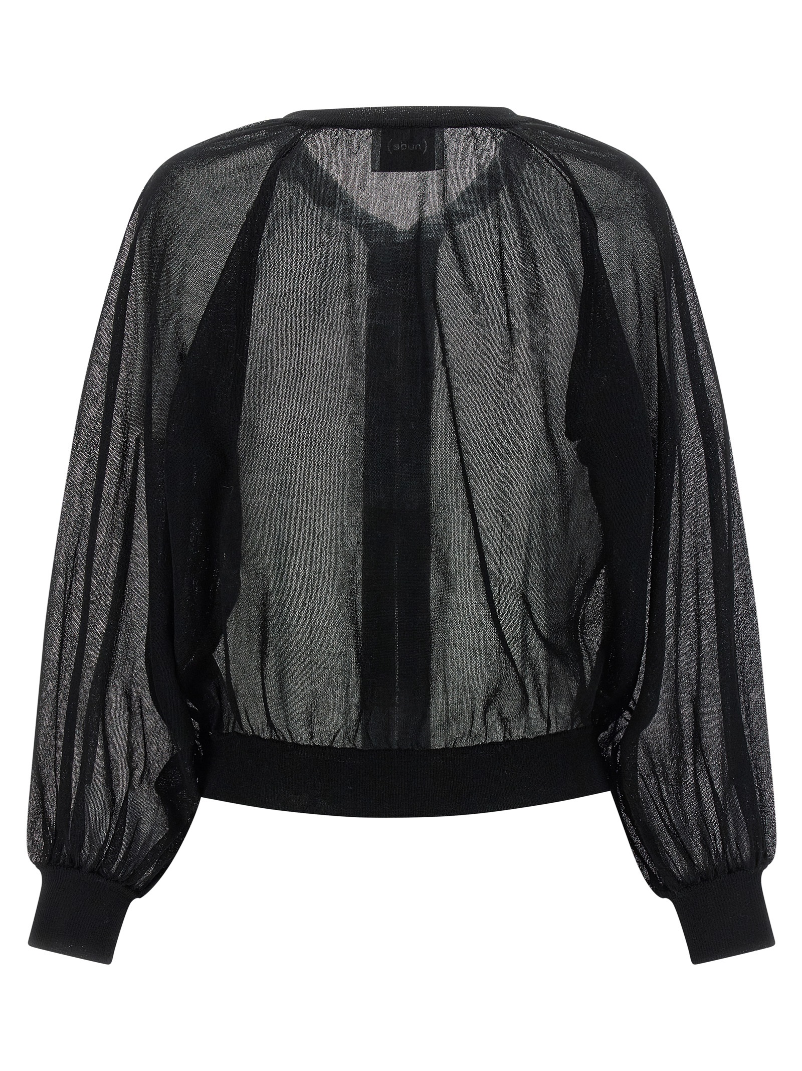 Cardigan in semi-transparent cotton blend, bomber jacket style, crew neck, front zip closure, long balloon raglan sleeves with cuffs, band on the hem.