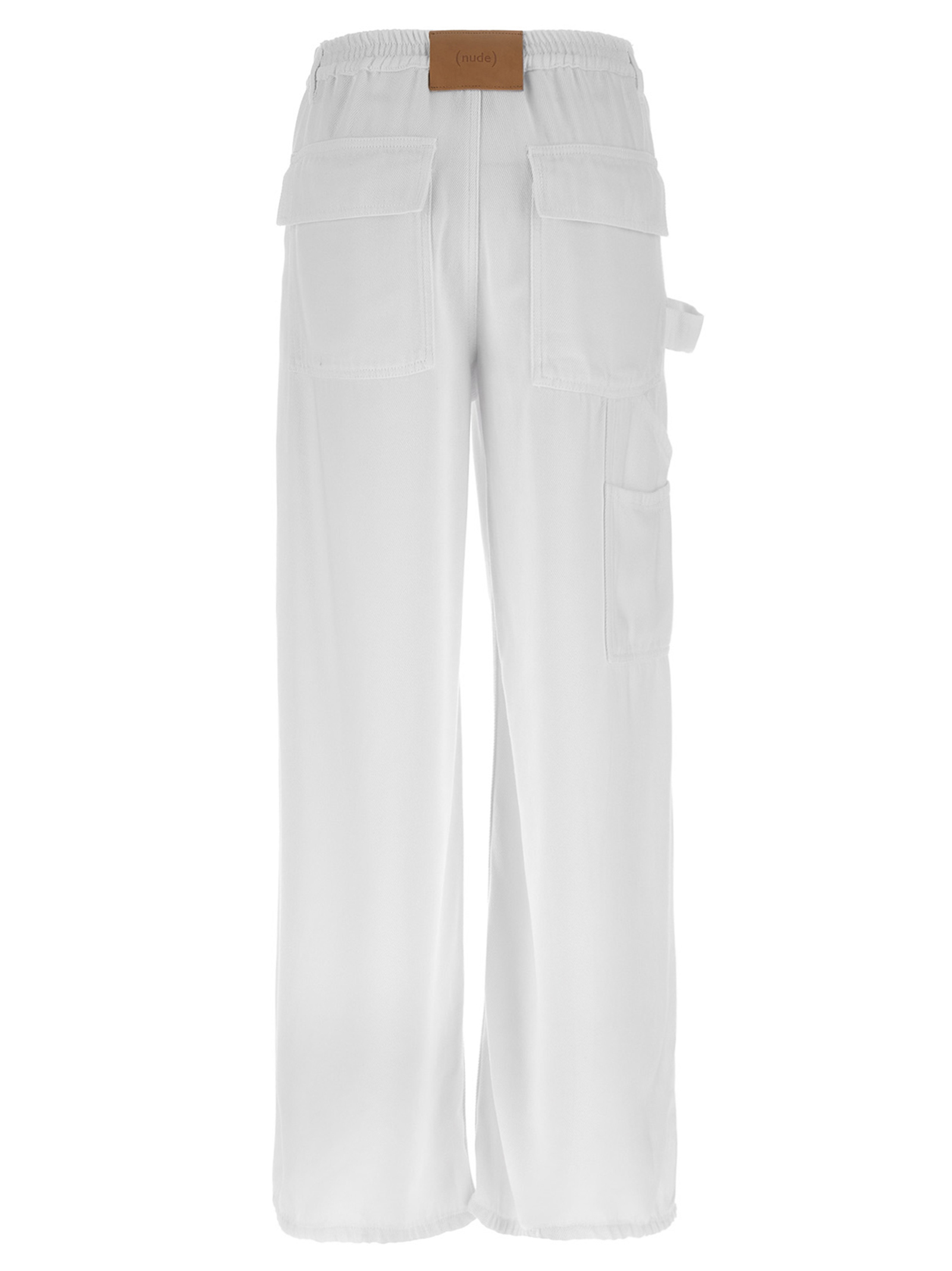 Cargo pants in denim-effect fabric with loose leg and elastic waistband.