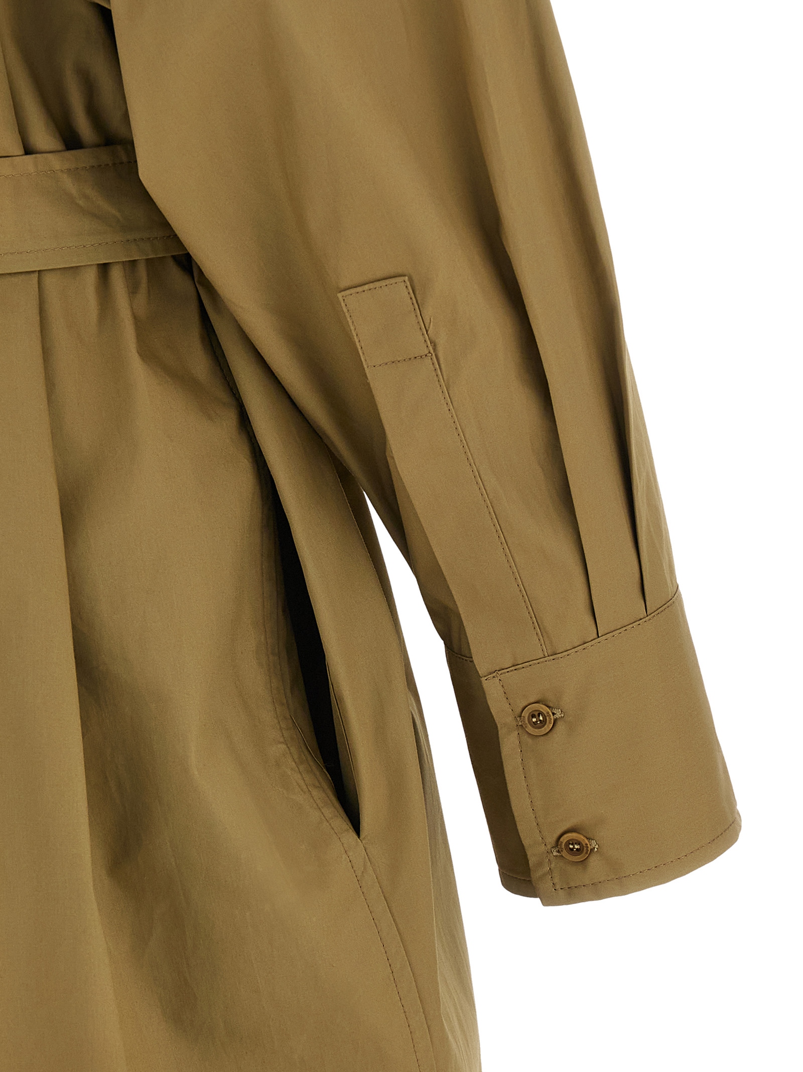 Chemisier midi dress in cotton poplin with open collar, long sleeves with cuffs and dropped shoulder, pockets, front and side slits, rounded hem, and removable matching belt.