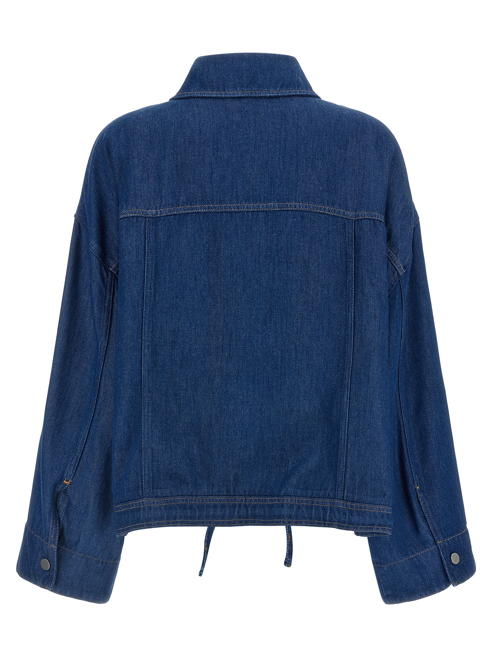 'Blake' wide denim jacket with shirt collar, front zip closure. front flap pockets, dropped shoulder and wide sleeves, long with cuffs and automatic, drawstring on the hem.
