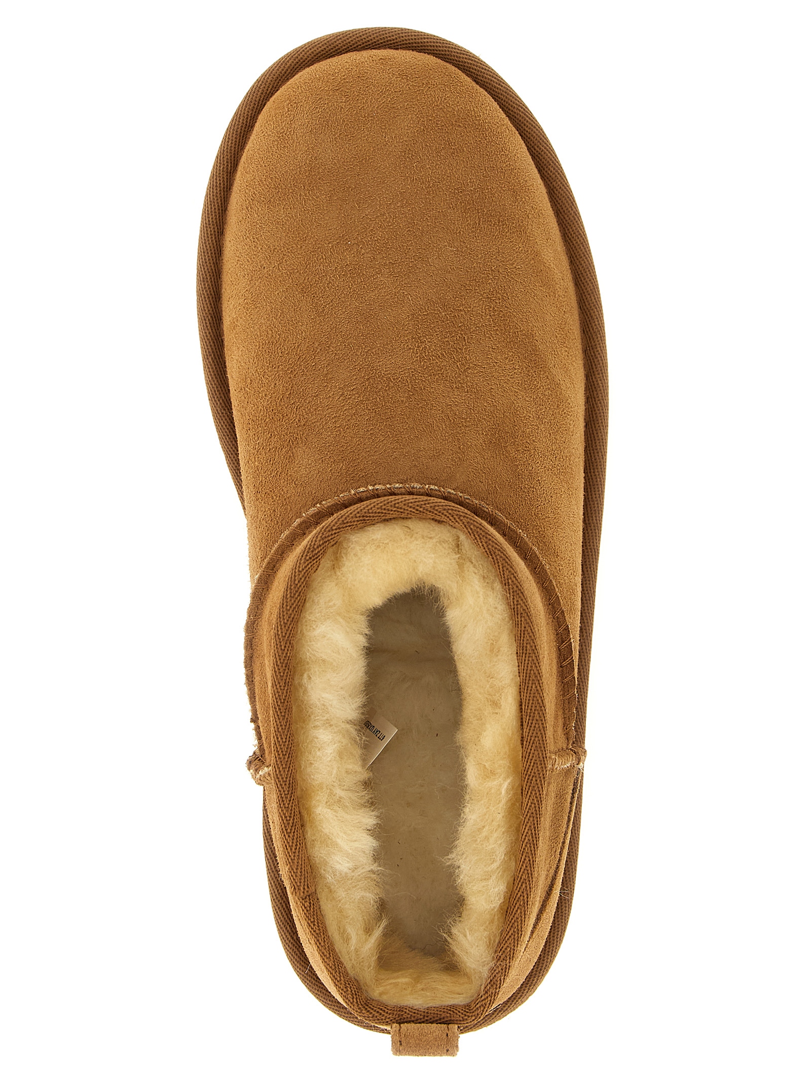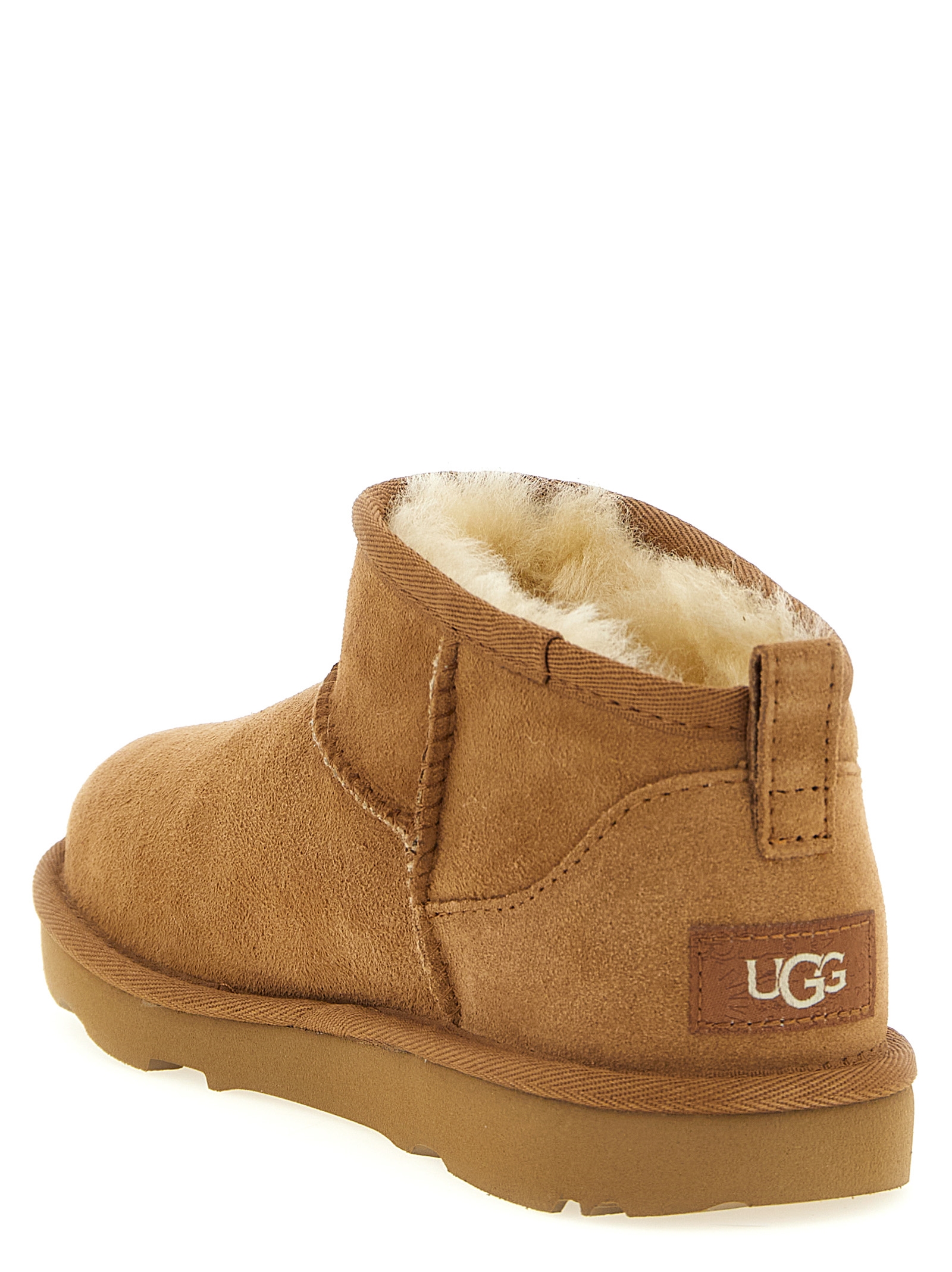 'Classic Ultra Mini' water-repellent suede ankle boots with overlock stitching, asymmetrical top trim, tone-on-tone logo patch at the back, sheepskin lining, UGGplush™ insole, sugar cane EVA sole.