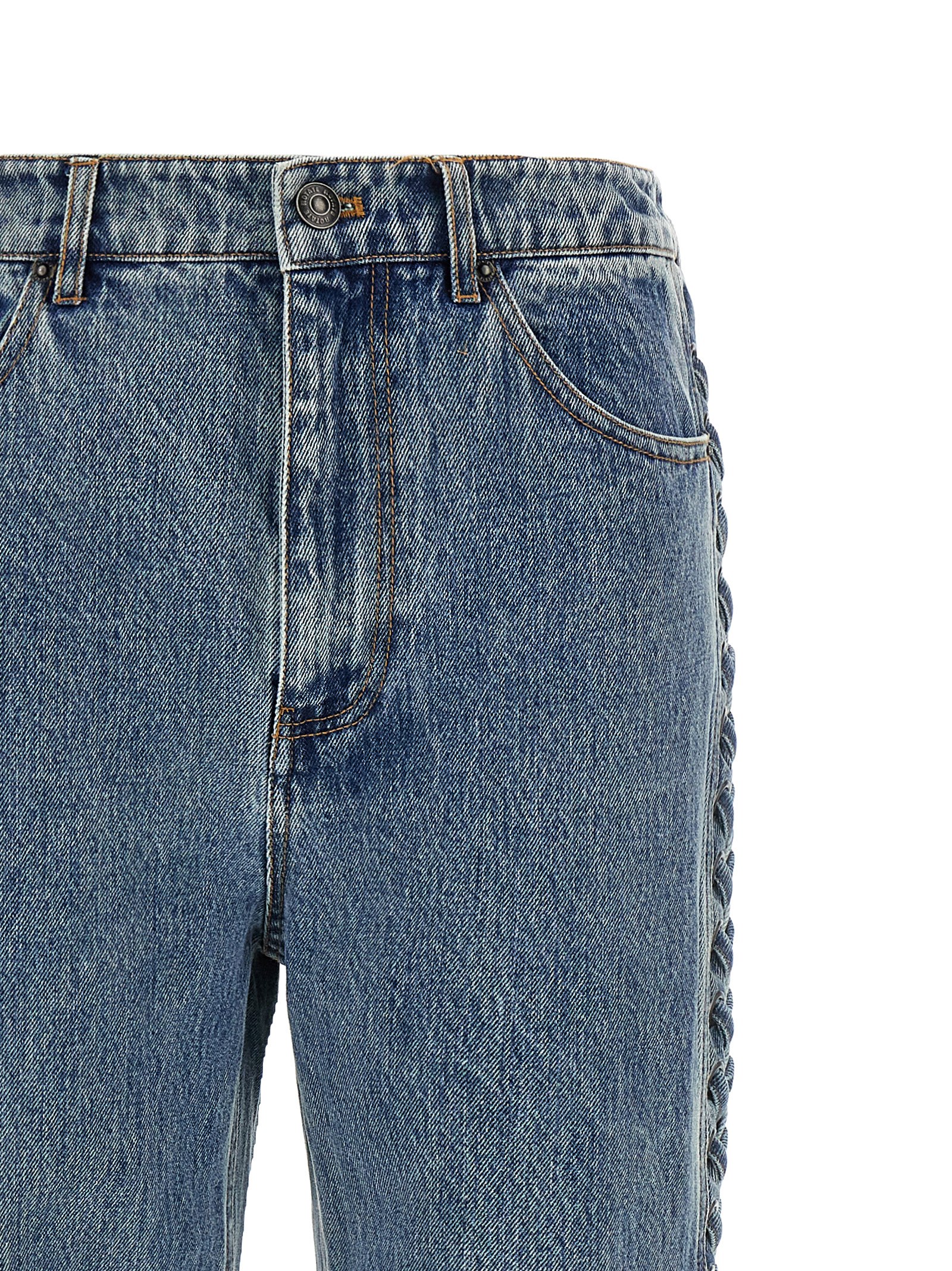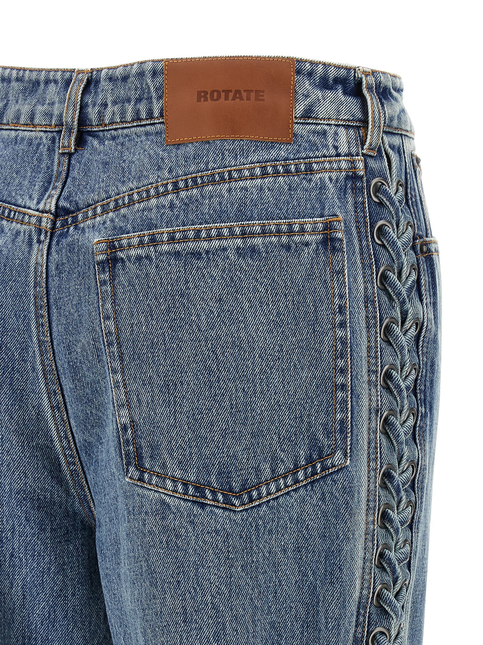 'Laced Straight Leg' cotton denim jeans with medium waist and straight leg with side opening and laces, zip and front button closure, five pockets, back leather logo tag. SUSTAINABLE: This product is made of organic cotton.