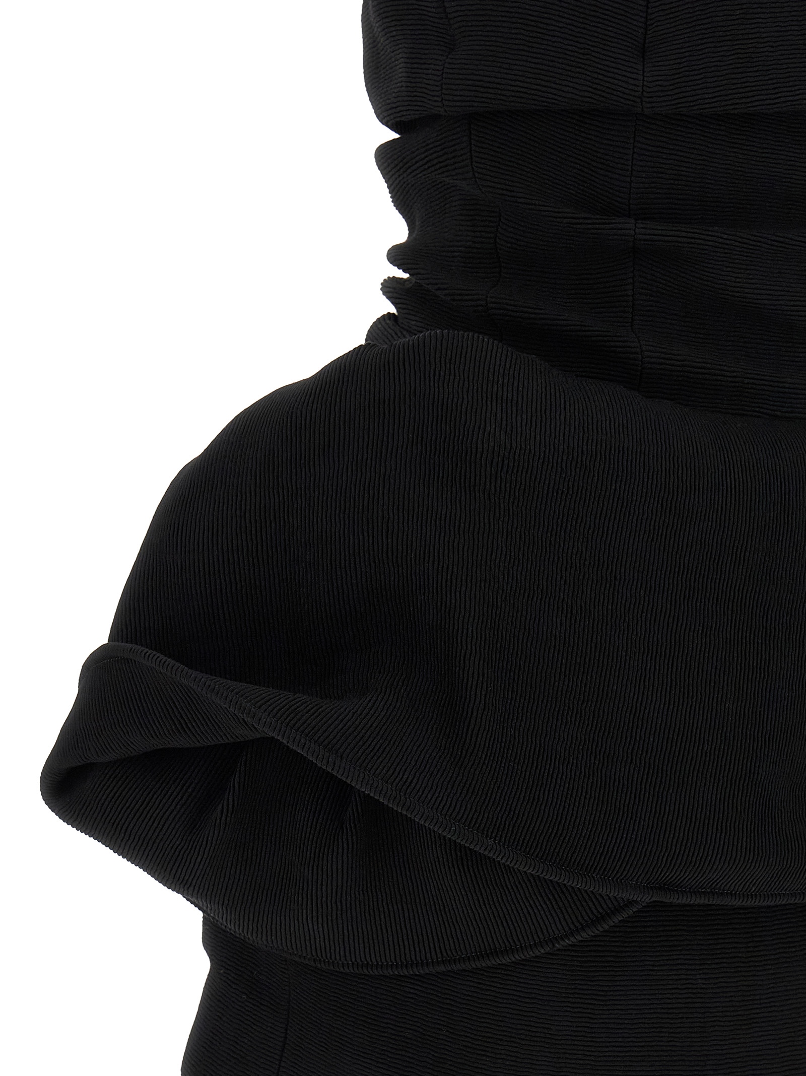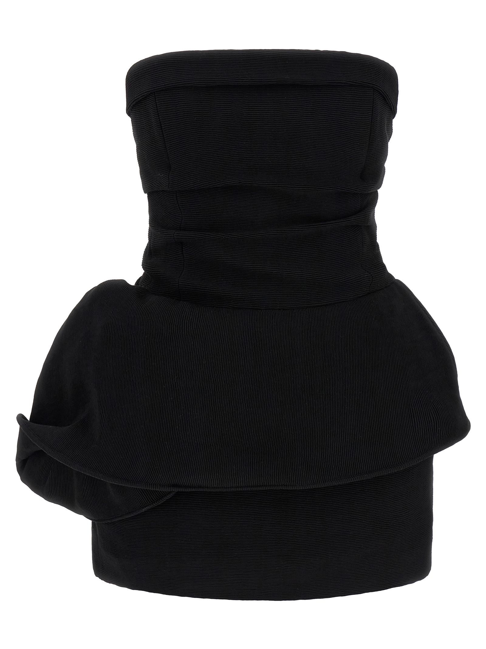'RE26 Dress 01' ribbed mini dress, off-shoulder model with inner lace corset with back hooks, padding in the bust, draping pattern, back closure with hidden zip.