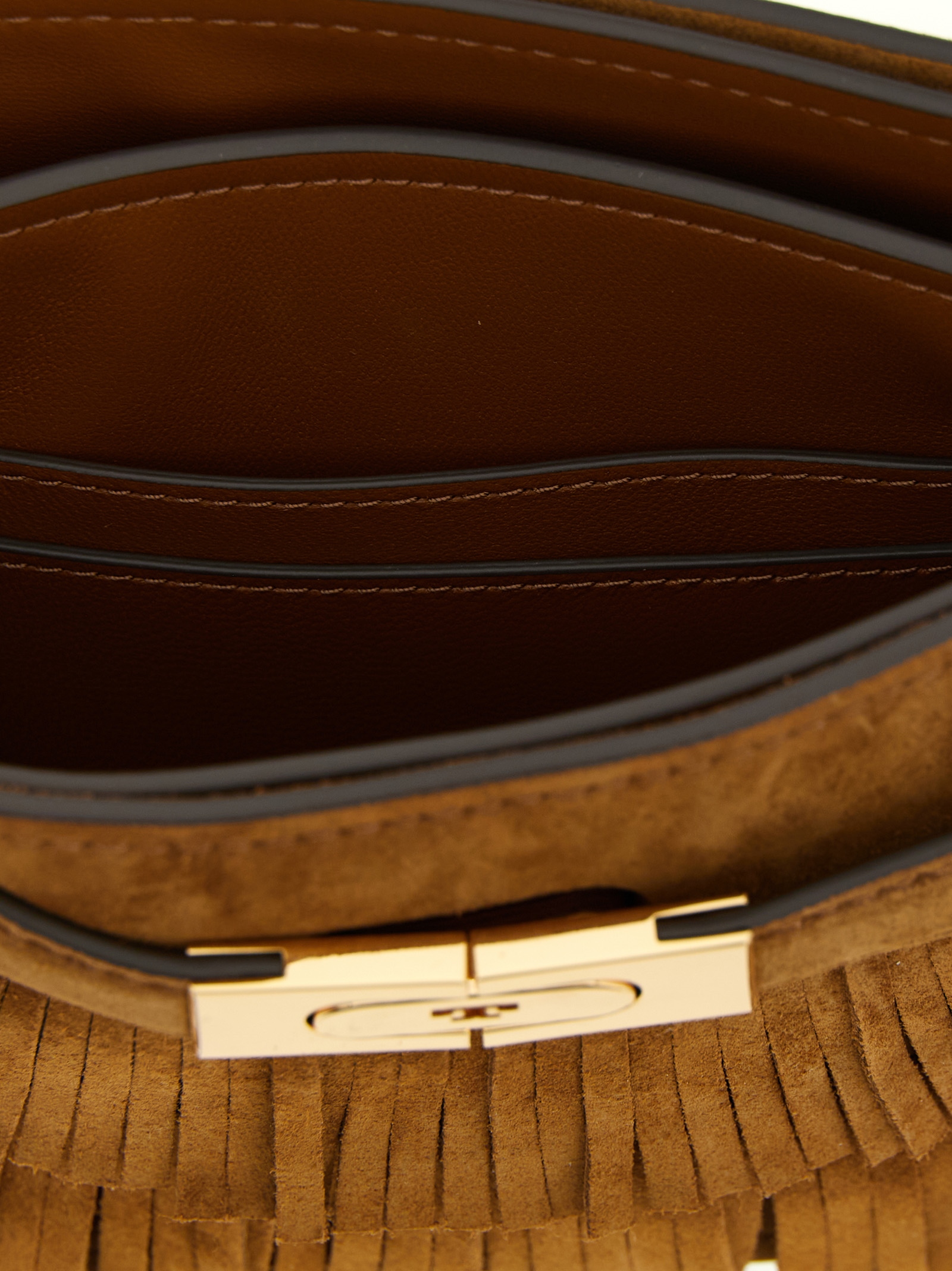 Radziwill petite Lee' crossbody bag in suede with fringes, fixed handle, front magnetic closure with logo, adjustable and removable shoulder strap.Характеристики товара