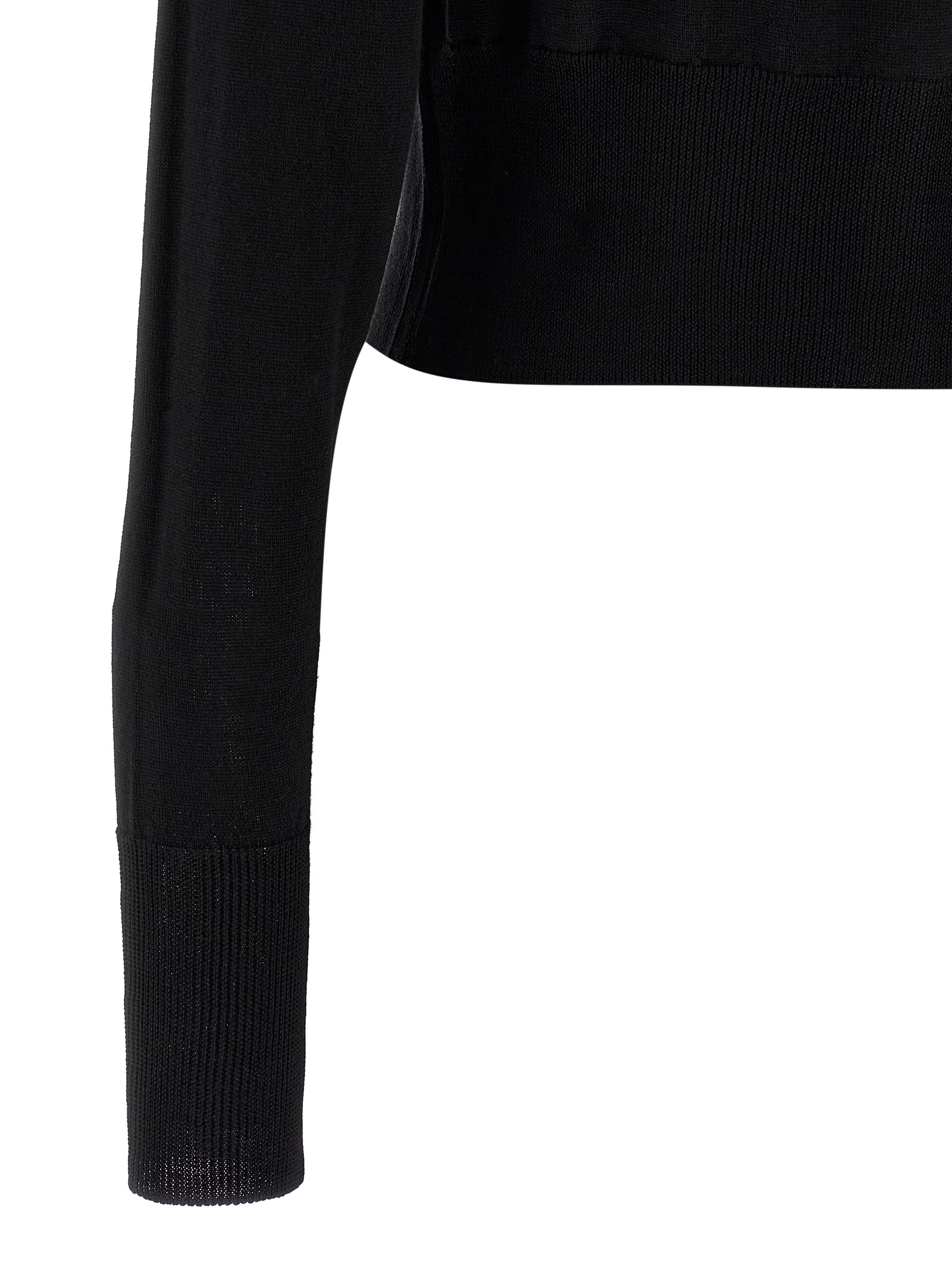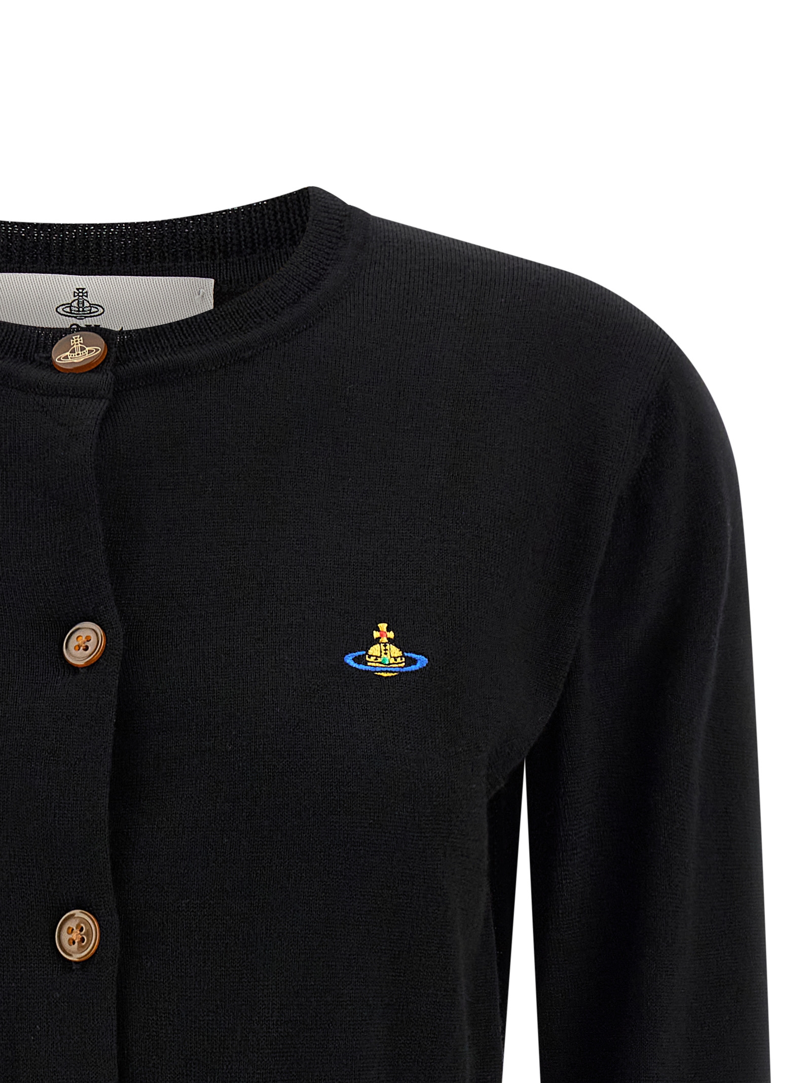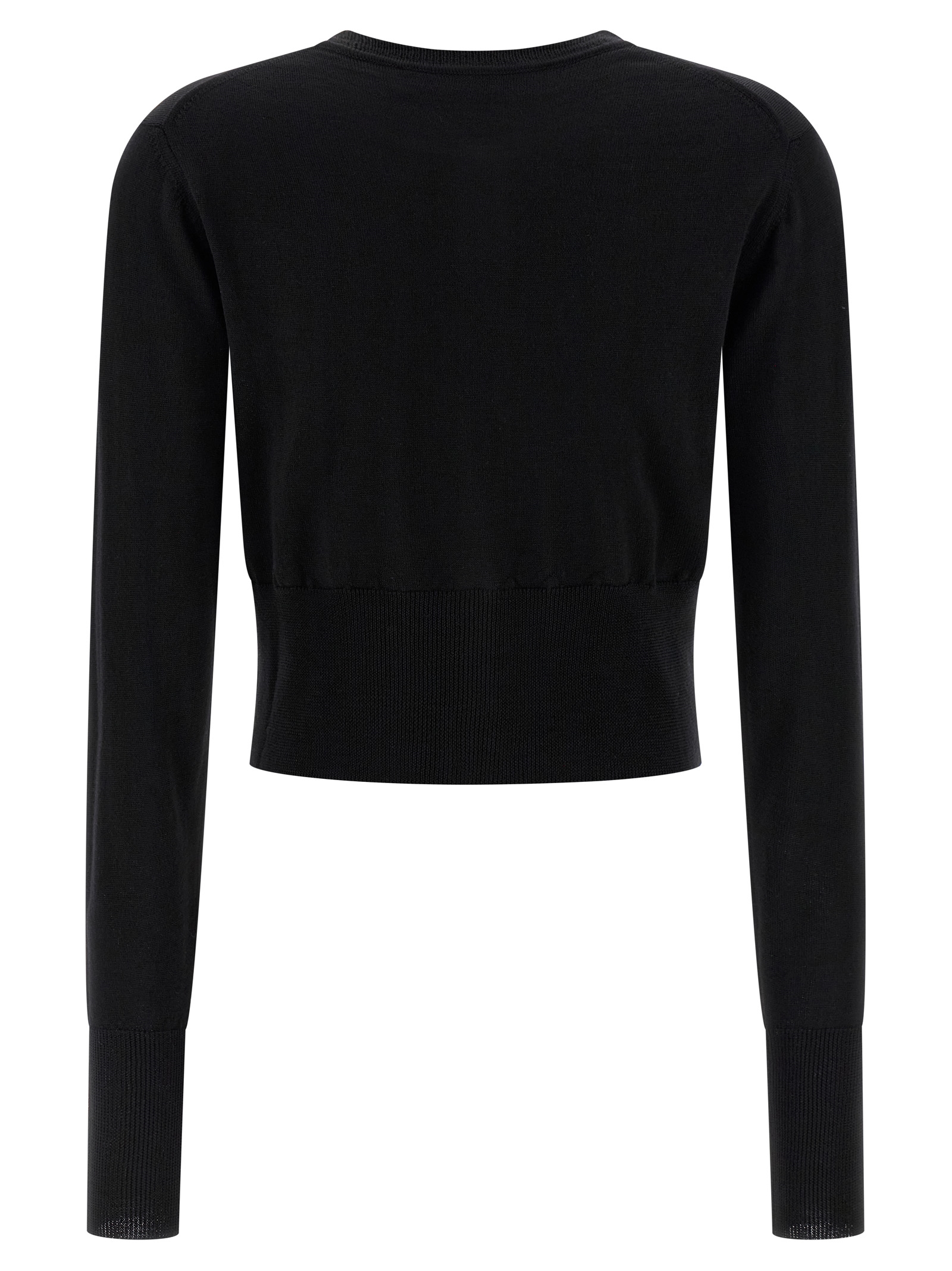 Bea' virgin wool cropped cardigan with logo embroidery and front button closure, round neckline, long cuffed sleeves.