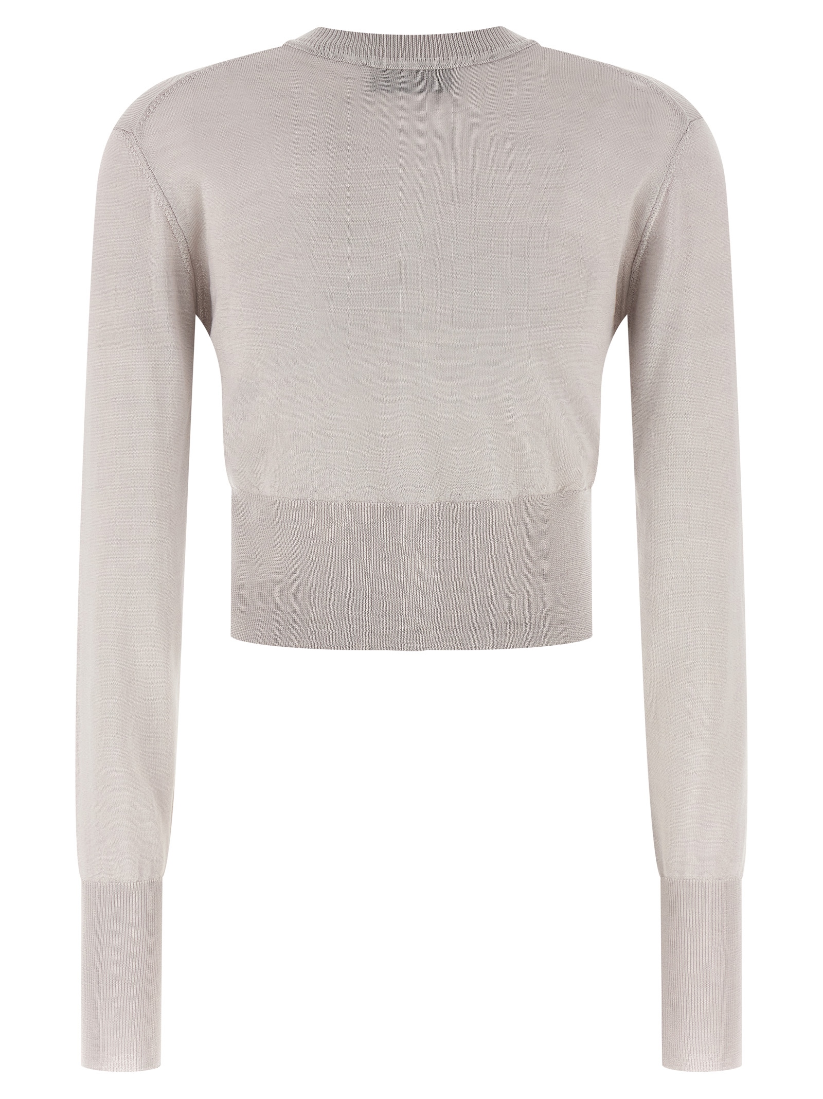 'Bea' cropped wool and silk cardigan with Orb logo embroidery and front button closure, round neckline, long cuffed sleeves.