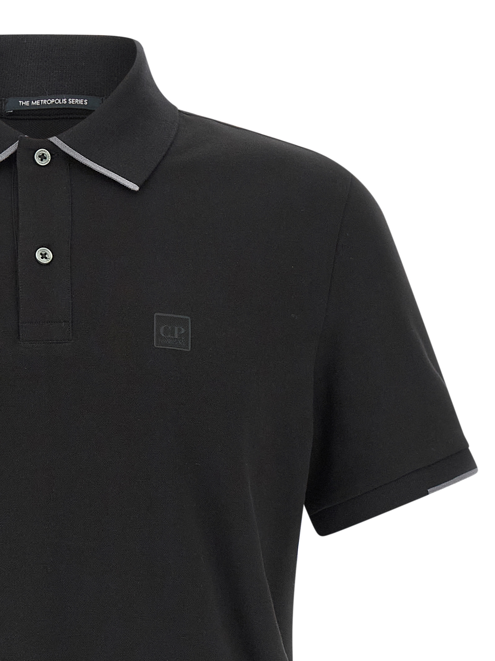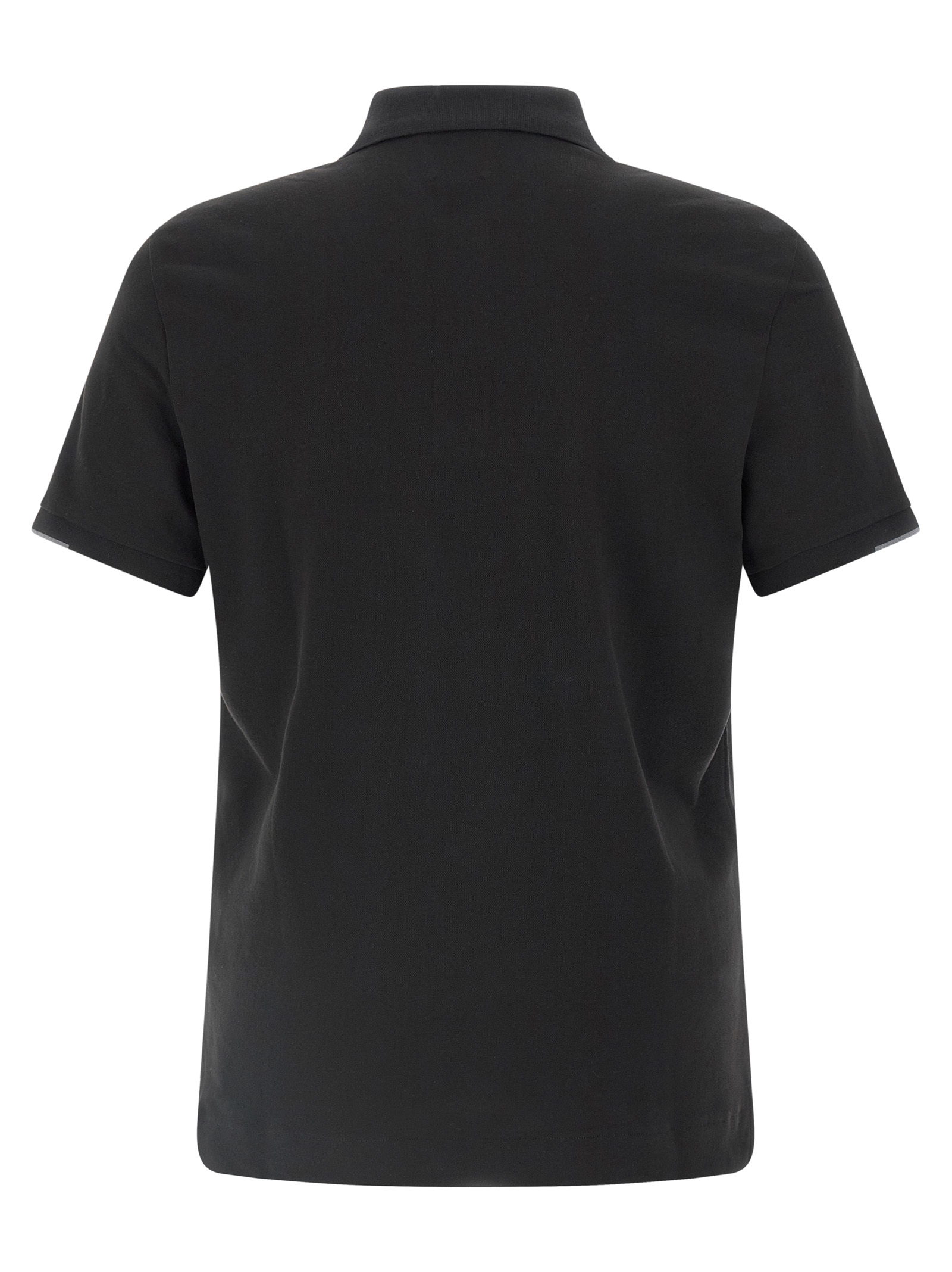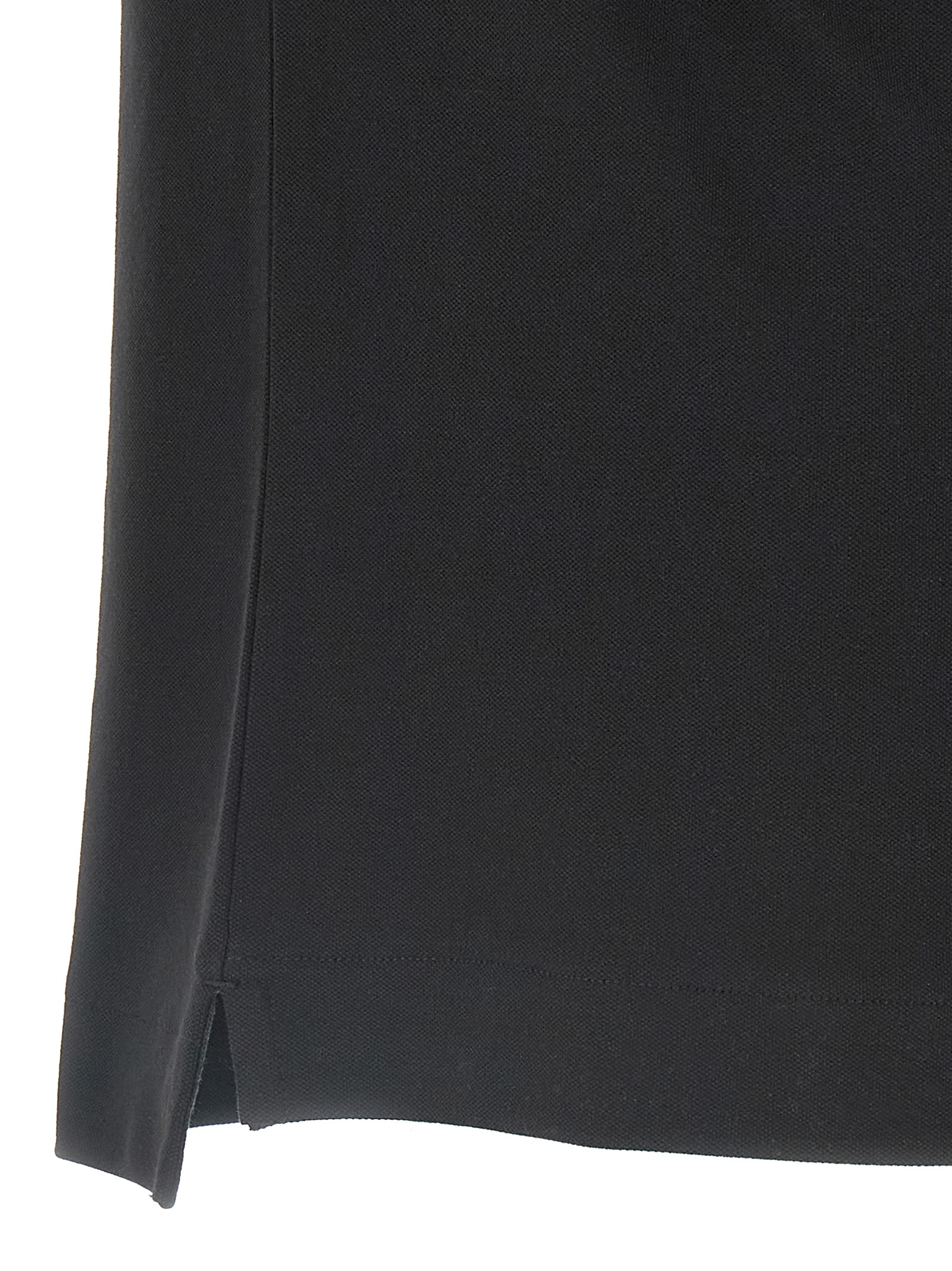 Polo shirt in slightly stretch cotton piquet, shirt collar, 2 button closure, front logo patch, side splits, asymmetric length, short sleeves.