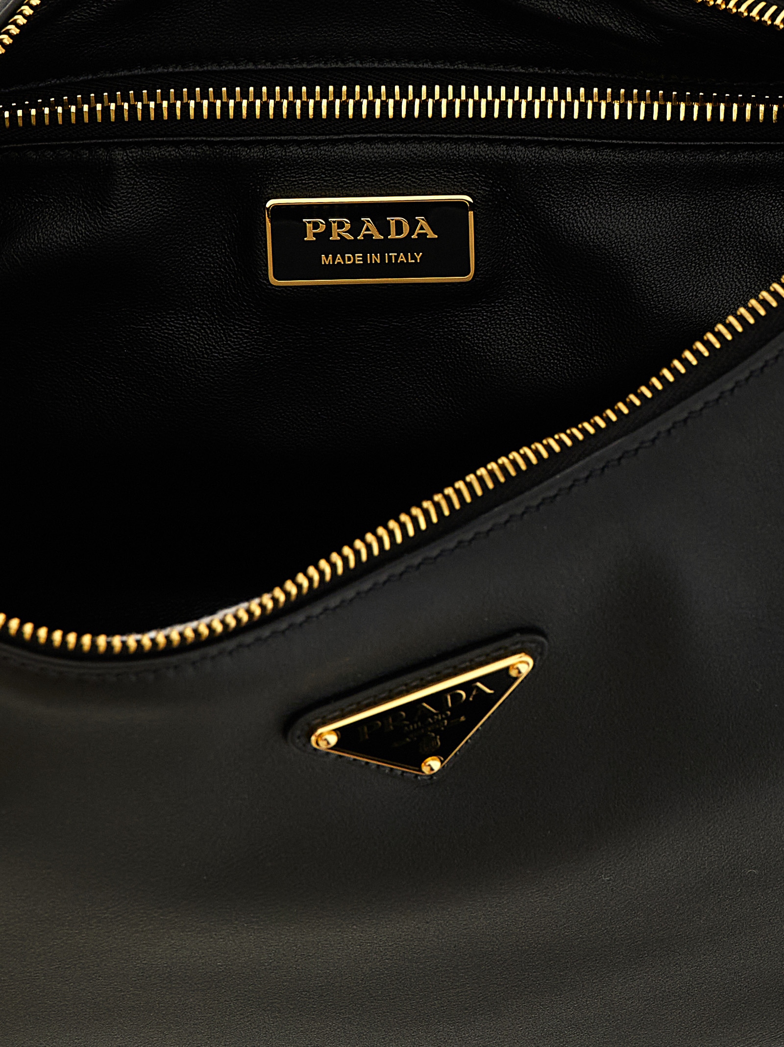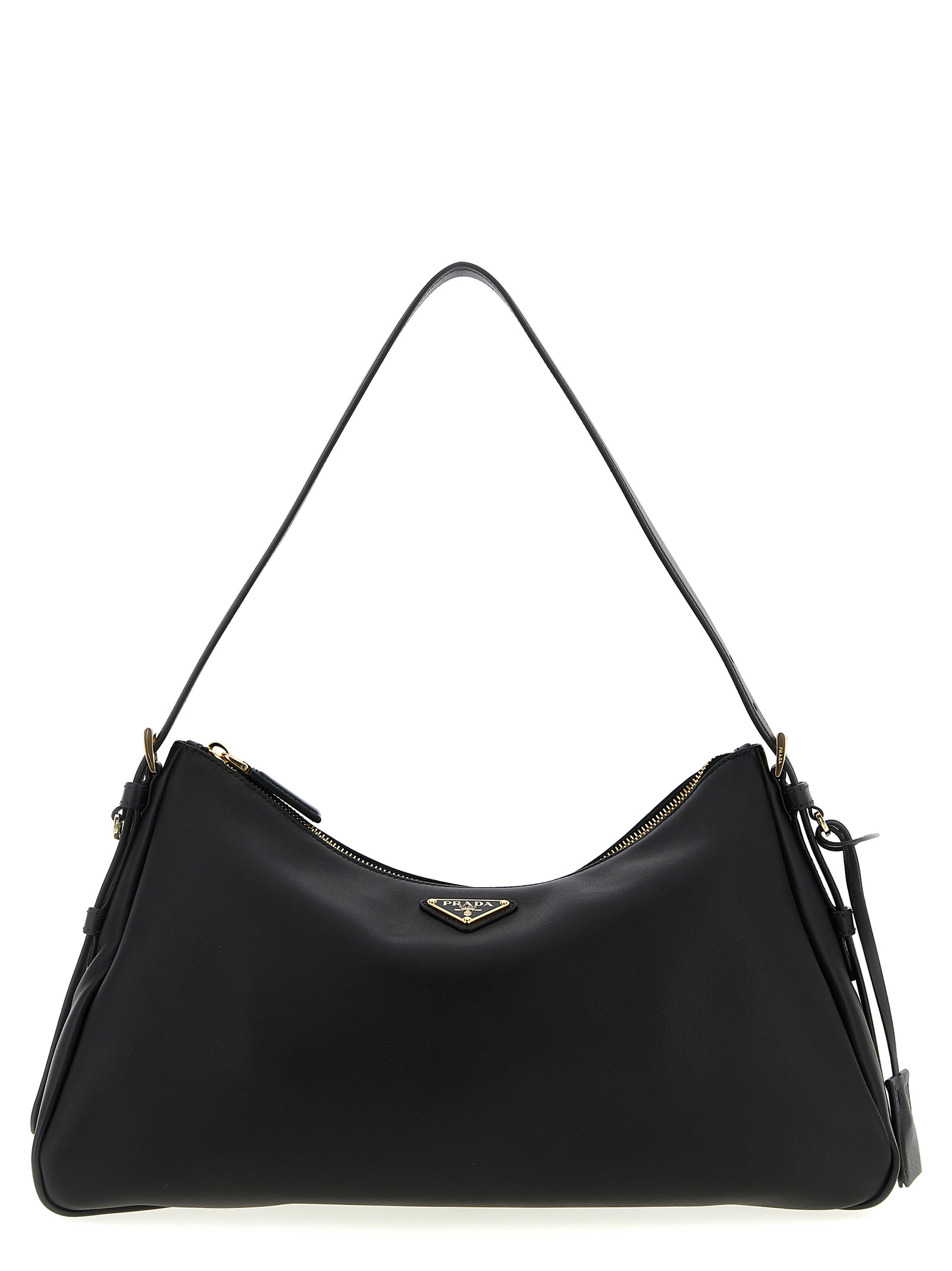 Большая сумка через плечо Aimée, регулируемая кожаная ручка, съемный брелок для ключей, металлическая отделка, застежка-молния, эмалированный металлический треугольный логотип спереди.Характеристики товара