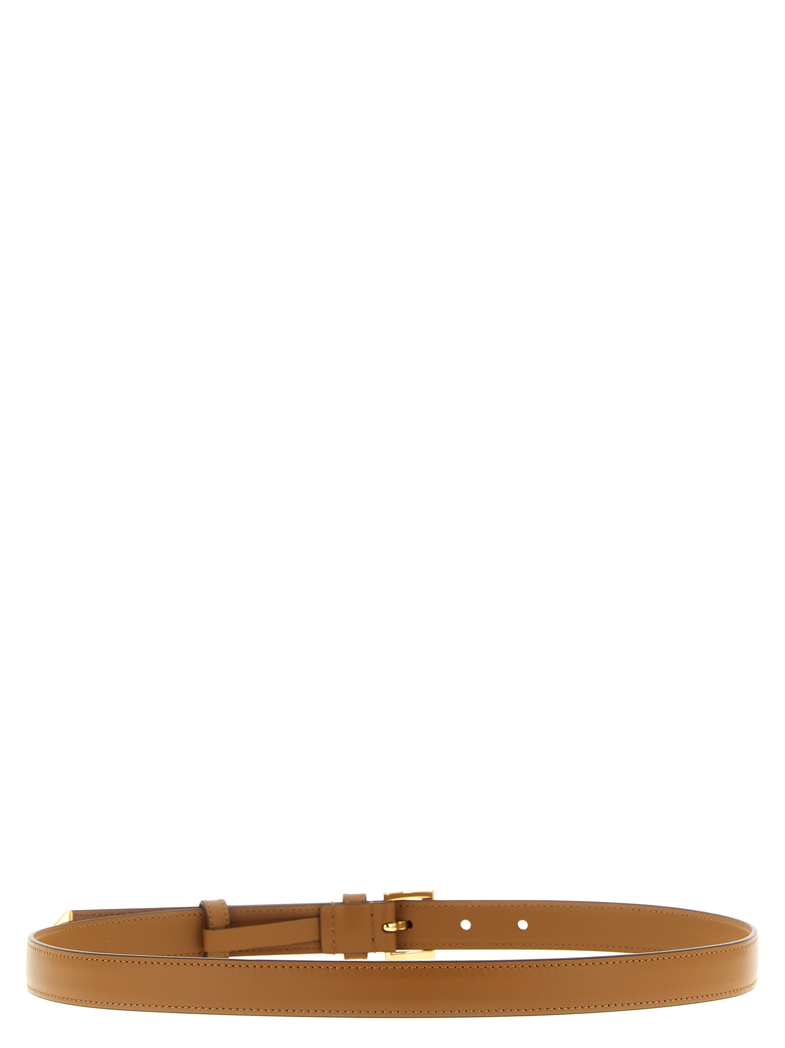 Leather belt, metal buckle, triangle logo in enamelled metal.