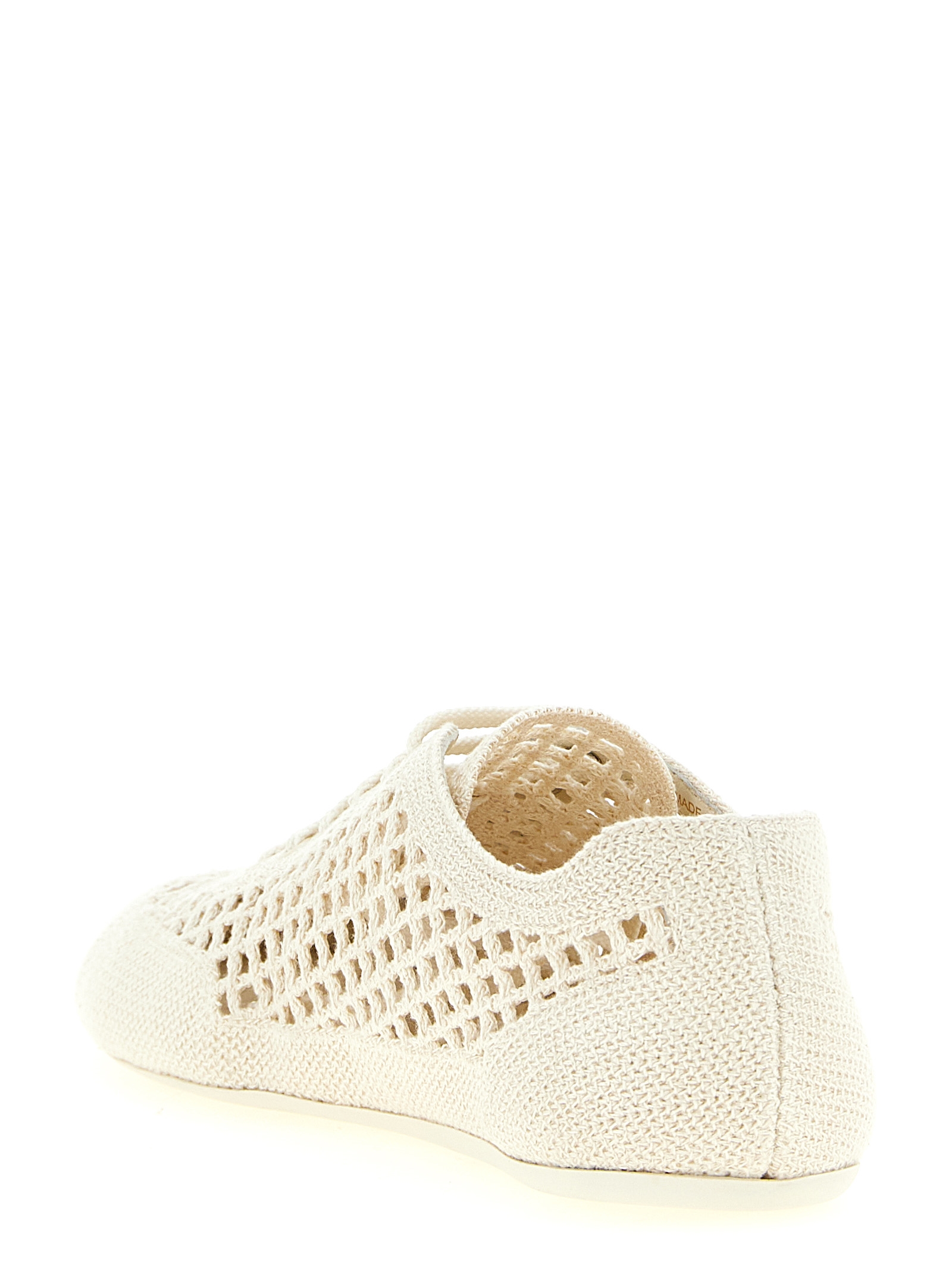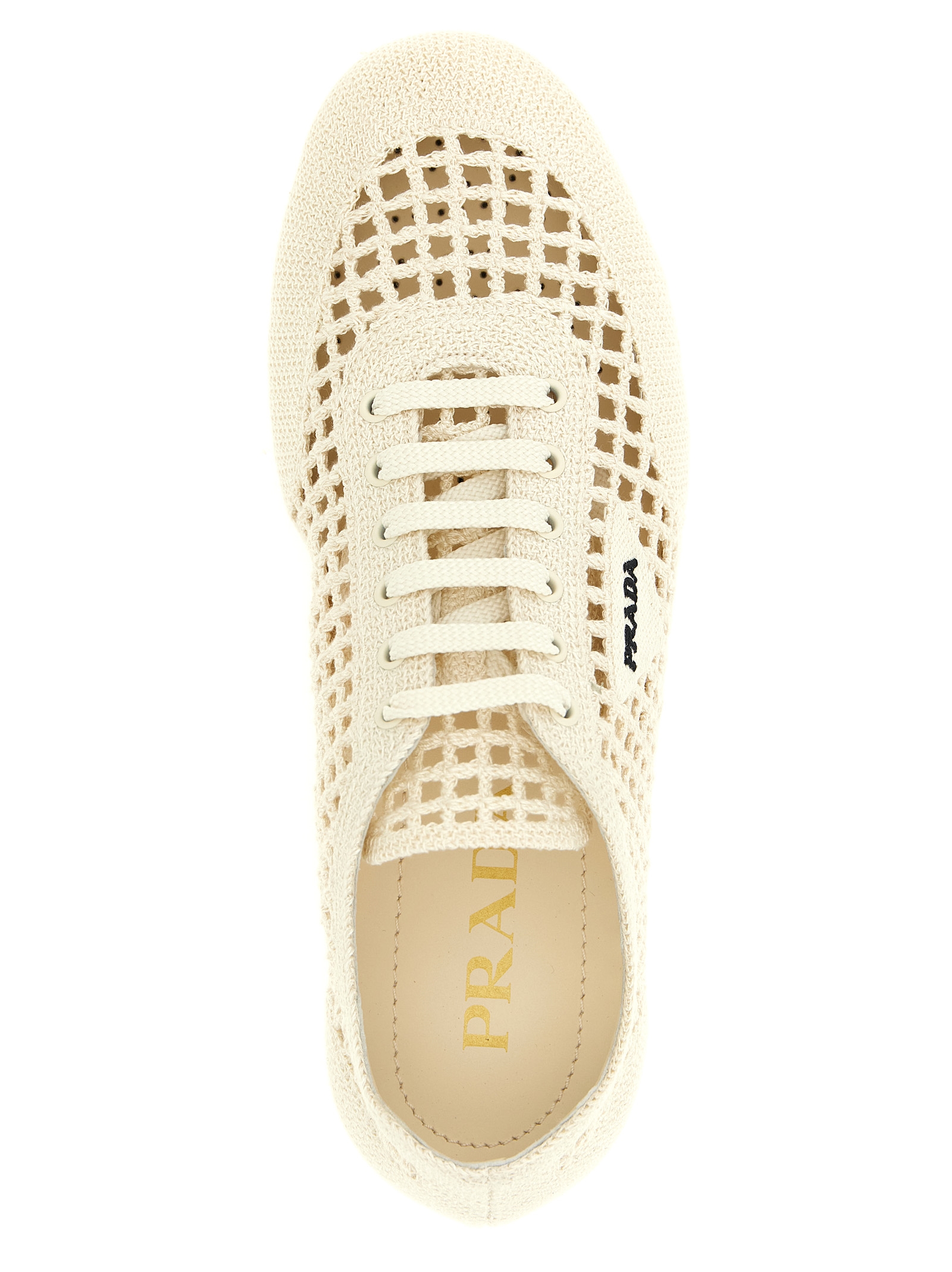 'Collapse' crochet knit sneakers with side logo embroidery, lace-up closure, leather lining, leather-covered removable insole, rubber sole.