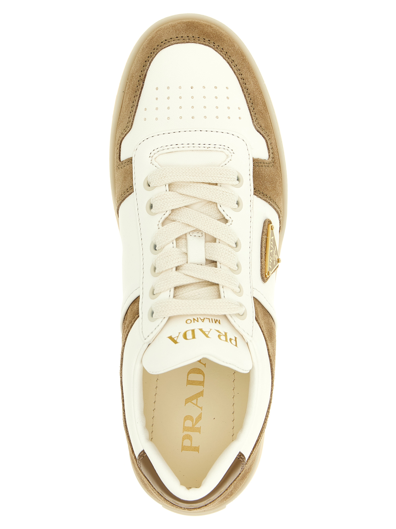 'Downtown Bold' nappa and suede sneakers with lace-up closure, embossed logo on tongue and heel, enameled metal triangle logo on the side, rubber platform sole.