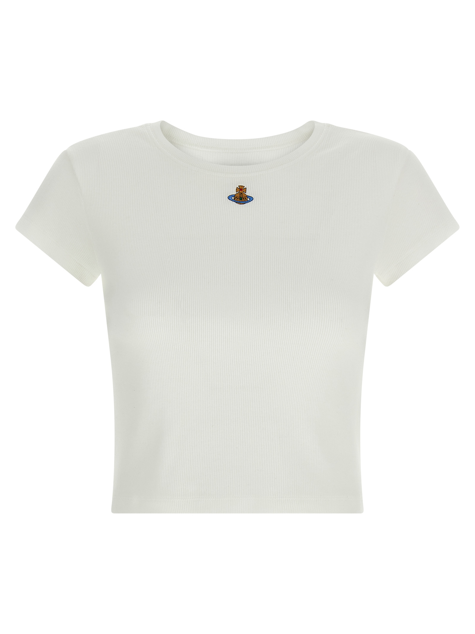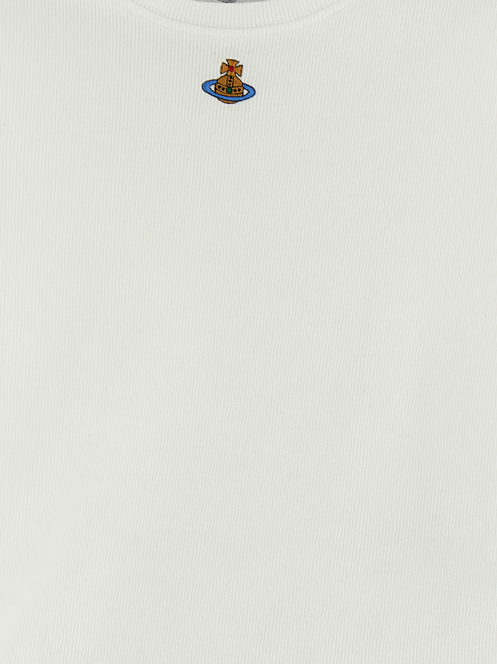 'Baby Peru' ribbed stretch cotton T-shirt, crop model, front Orb logo embroidery, crew neck, short sleeves. SUSTAINABLE: This product is made with organic cotton.