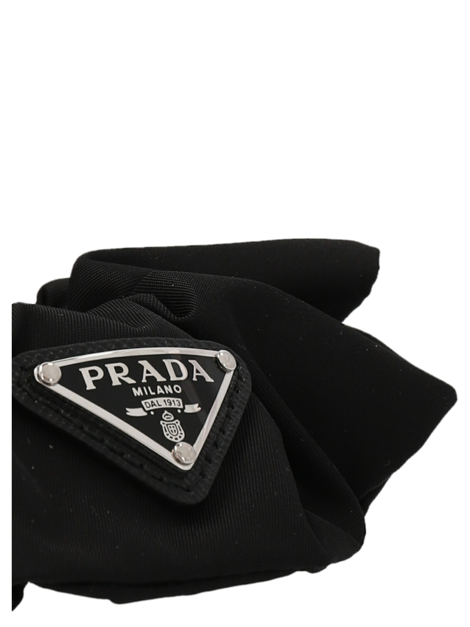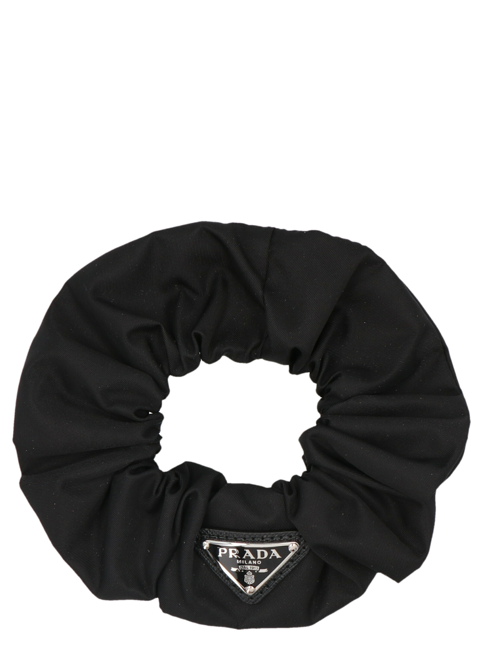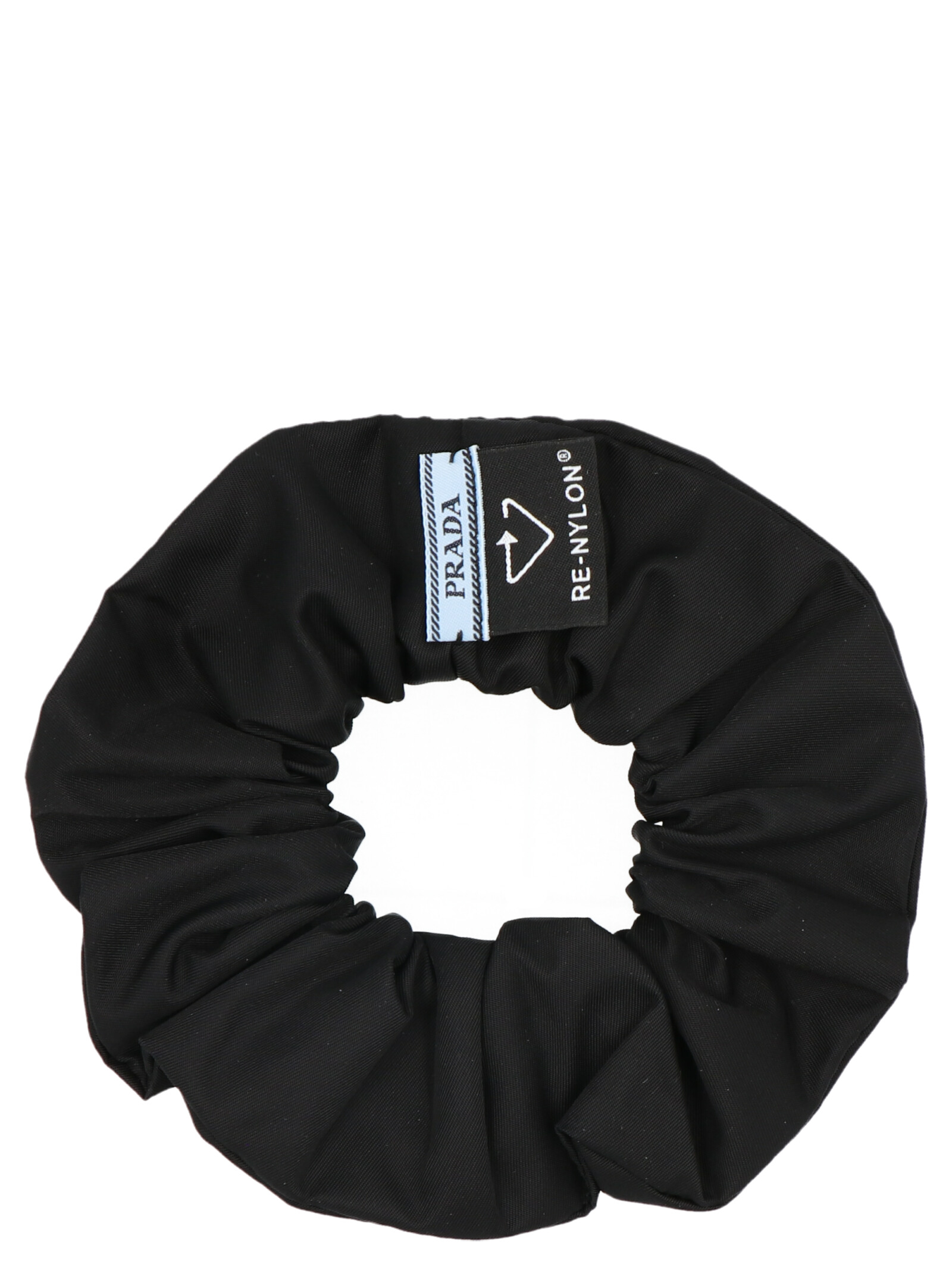 Резинка для волос Re-Nylon с аппликацией в виде металлического треугольного логотипа, покрытого эмалью. ЭКОЛОГИЧНОСТЬ: Изделие изготовлено из Re-Nylon, регенерированной пряжи, полученной из переработанного и очищенного пластика, собранного из океанов, рыболовных сетей и текстильных волокон.Характеристики товара