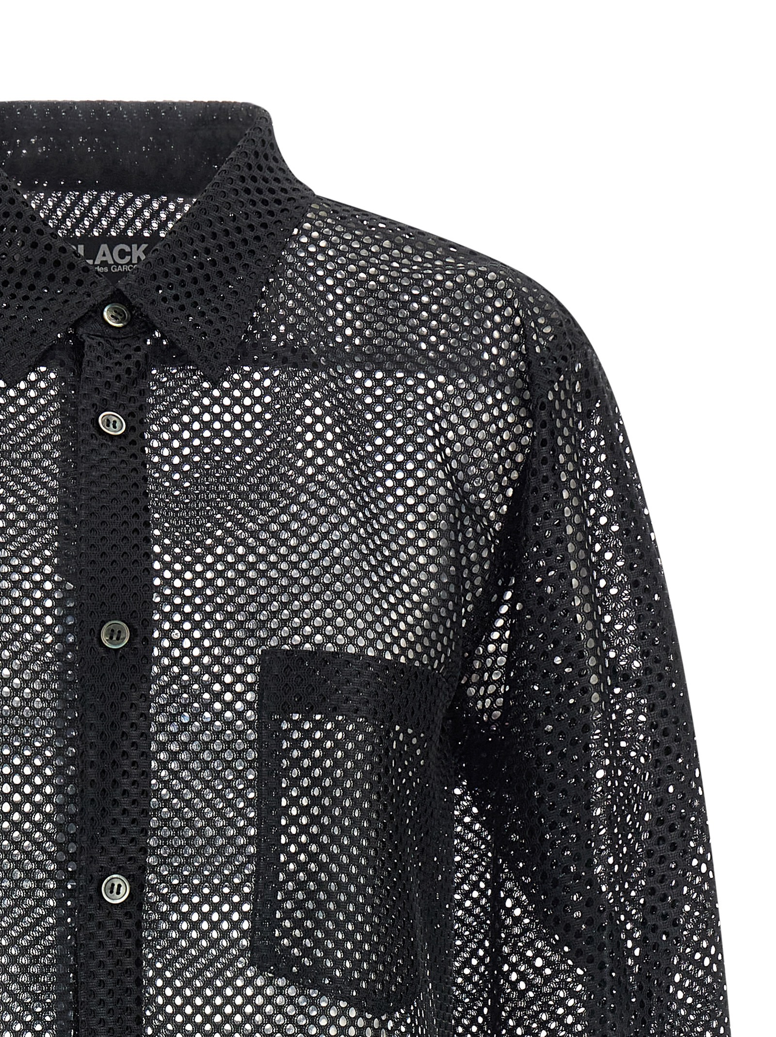Mesh fabric shirt with I see I do not see, pocket, front button closure, long sleeves with cuffs, rounded hem.Характеристики товара