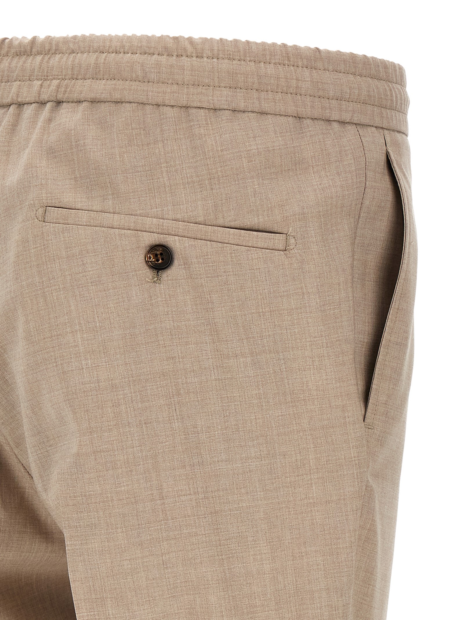'Modello 78' cool wool pants, straight leg, stretched pleat, drawstring elastic waistband, zip and front button closure, pockets.