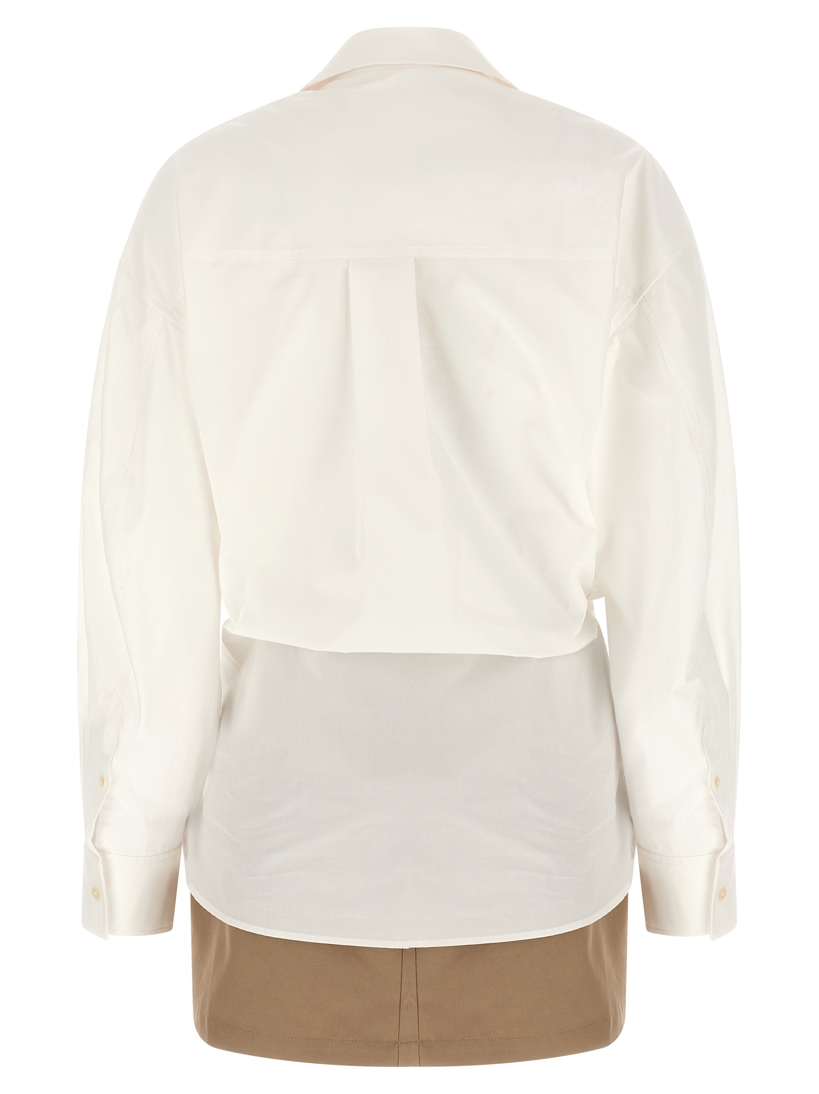 Mini 'Pre-styled wrap dress' dress consisting of canvas mini skirt with wallet closure and cotton poplin shirt, front pocket with logo embroidery, collar, button closure, long sleeves with cuffs.