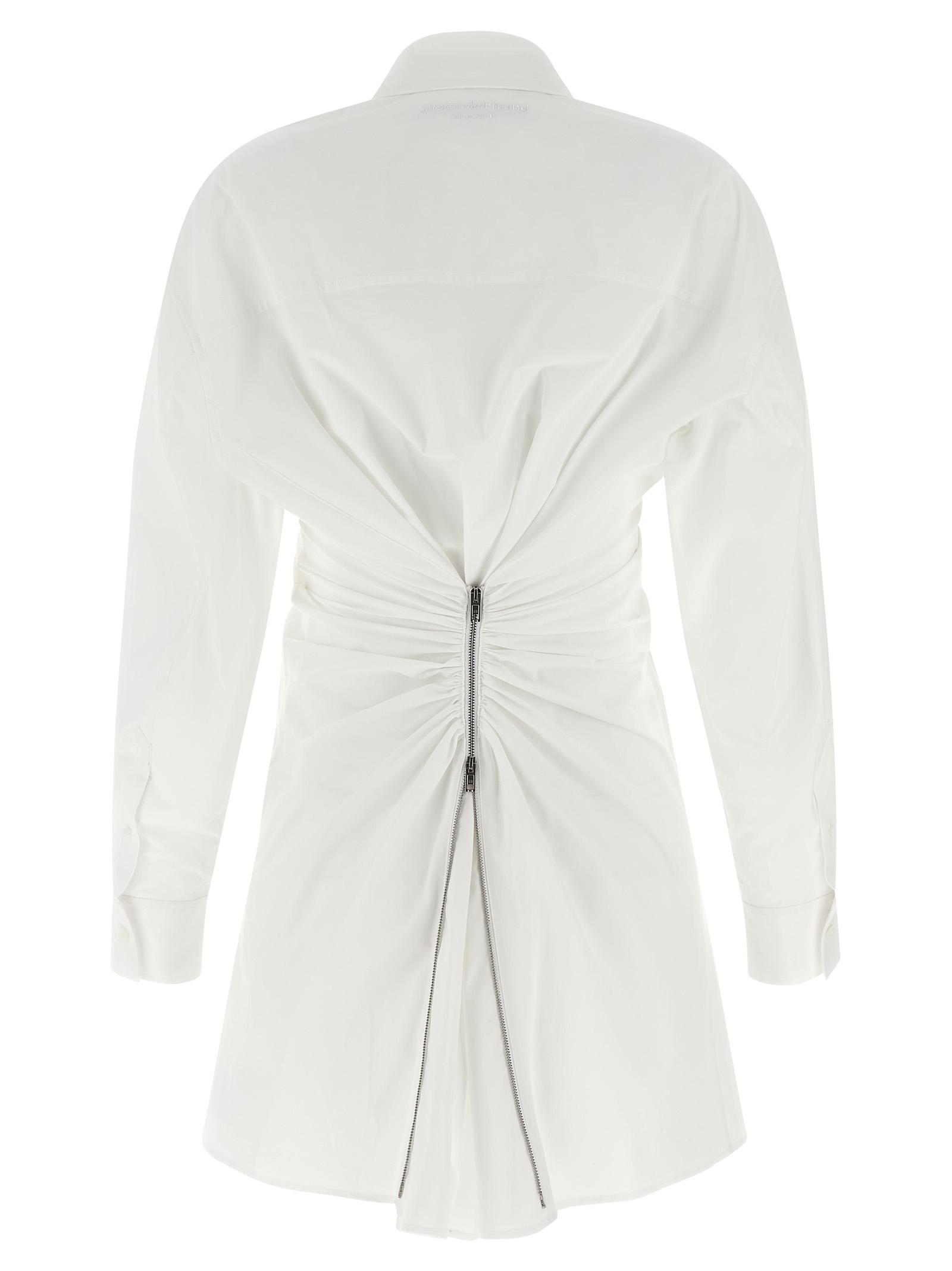 Мини-платье Chemisier из хлопкового поплина с застежкой-молнией сзади, декоративной отделкой в виде завитков, застежкой на перламутровые пуговицы спереди, заостренным воротником, длинными рукавами с манжетами и приспущенными плечами.Характеристики товара