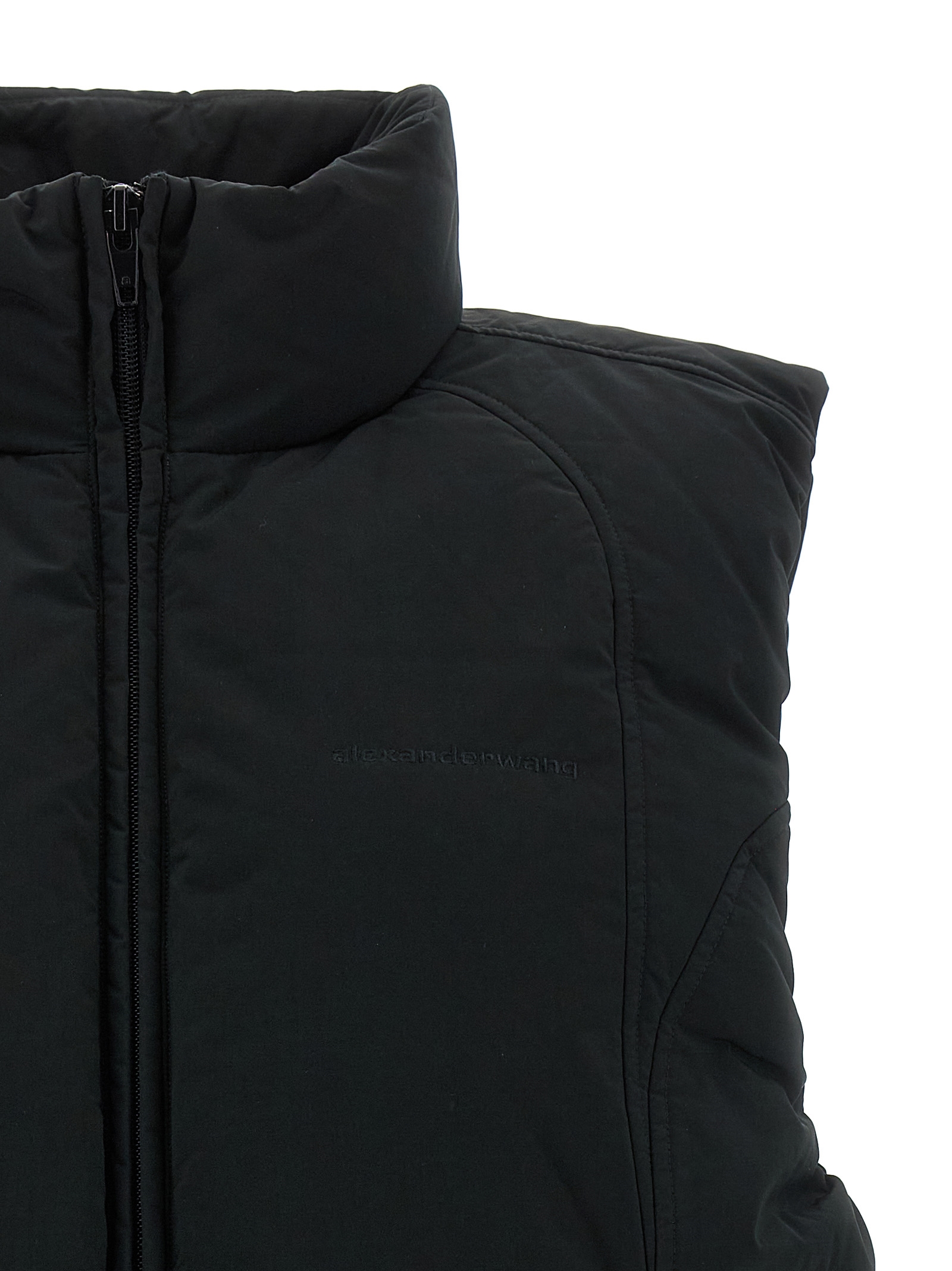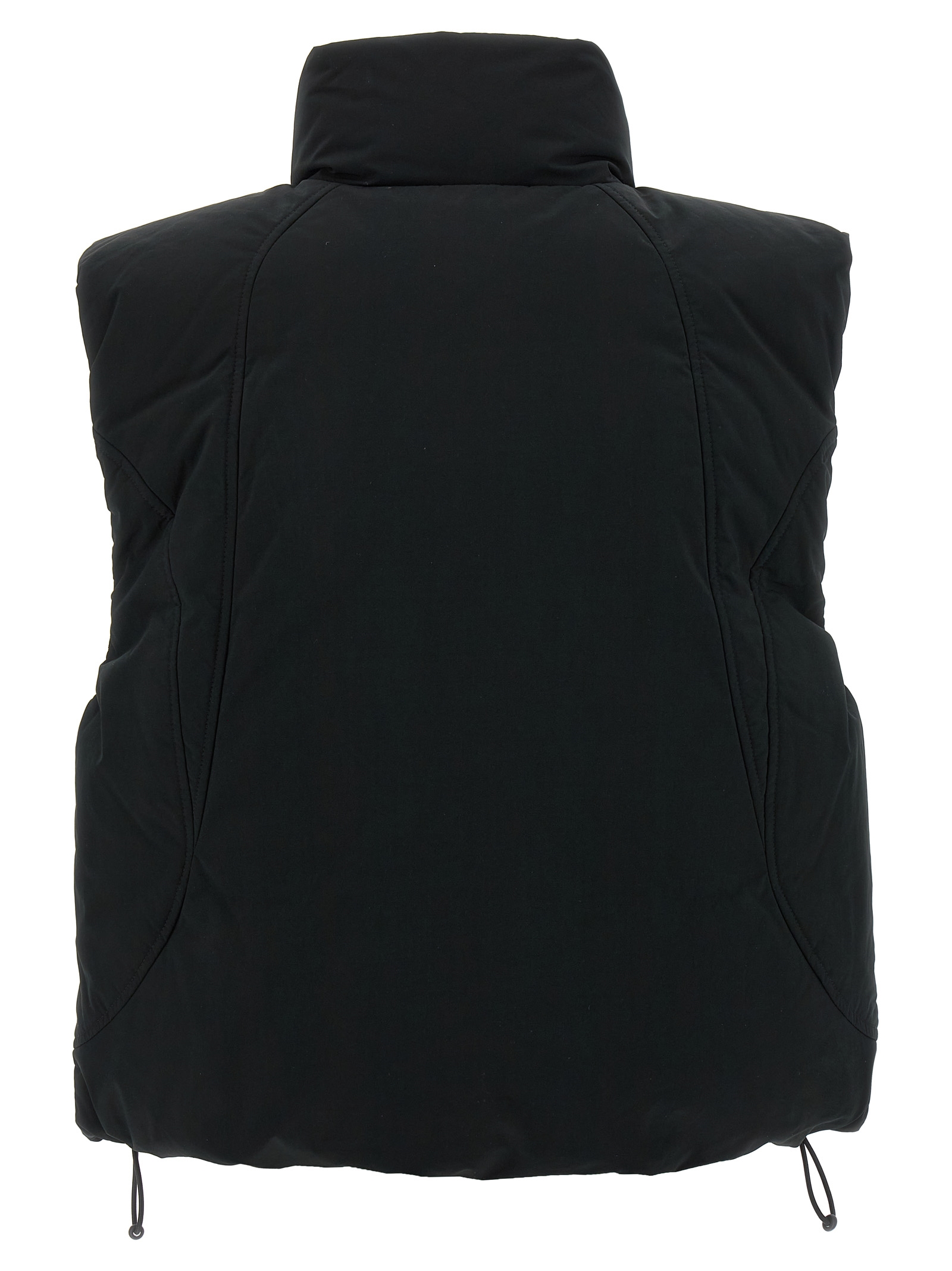 'Puffer' cropped vest in goose feather padded fabric with tone-on-tone logo embroidery and front zip closure, standing collar, pockets, drawstring on the hem.